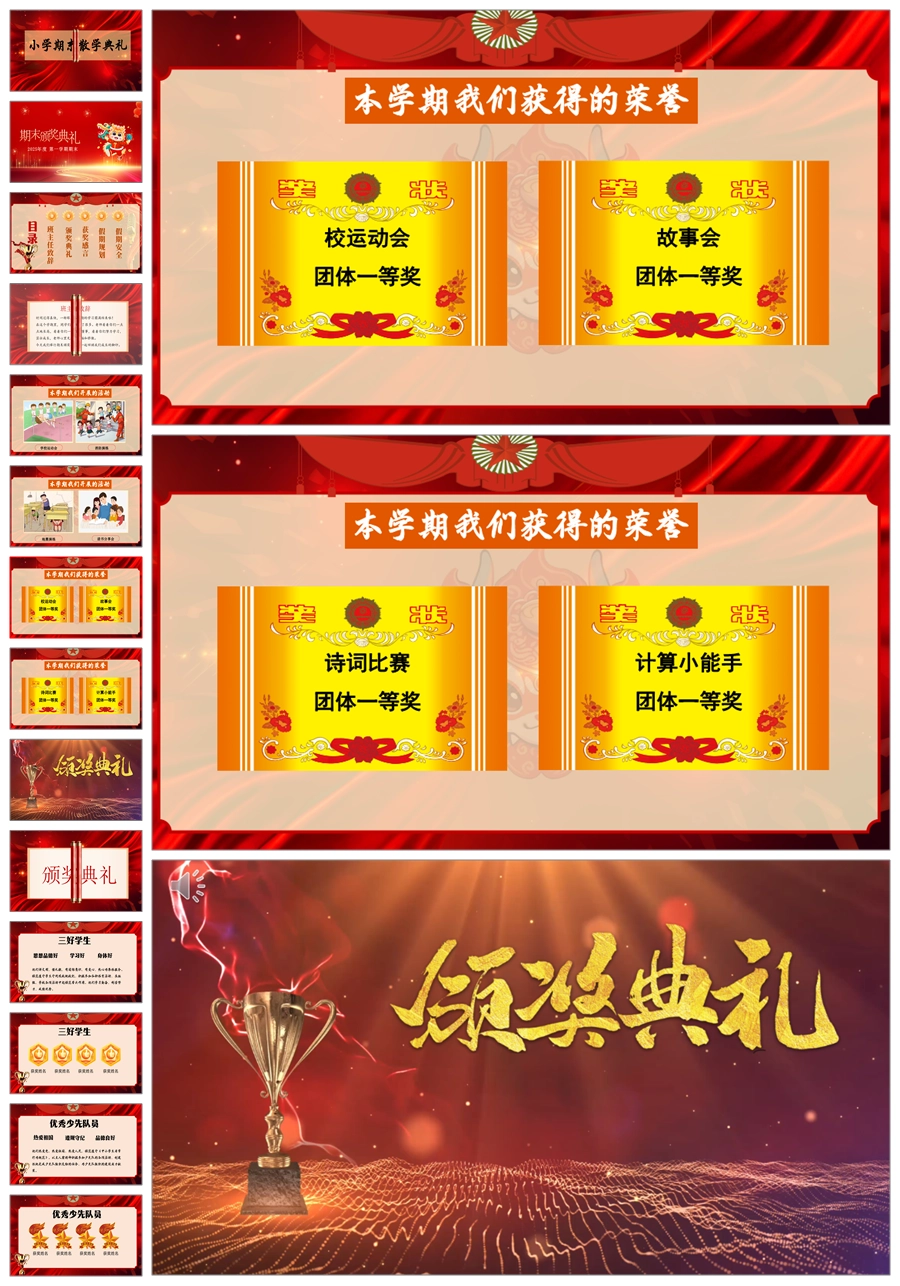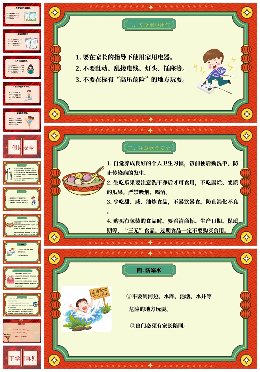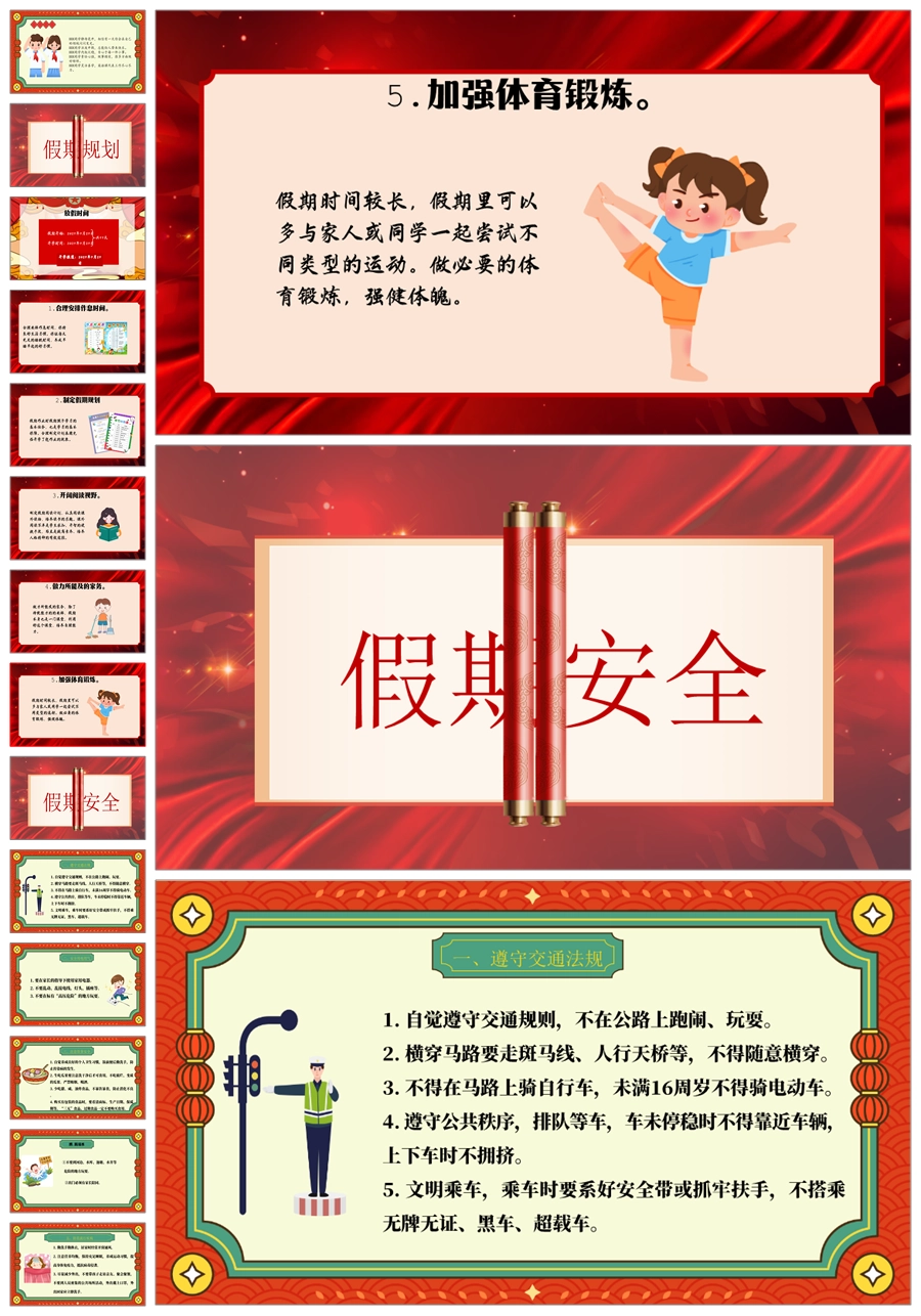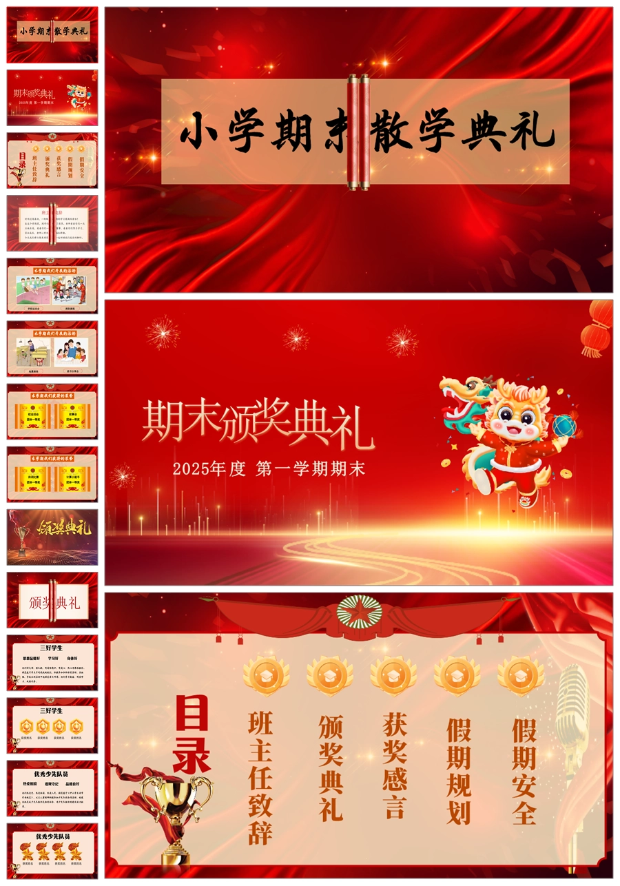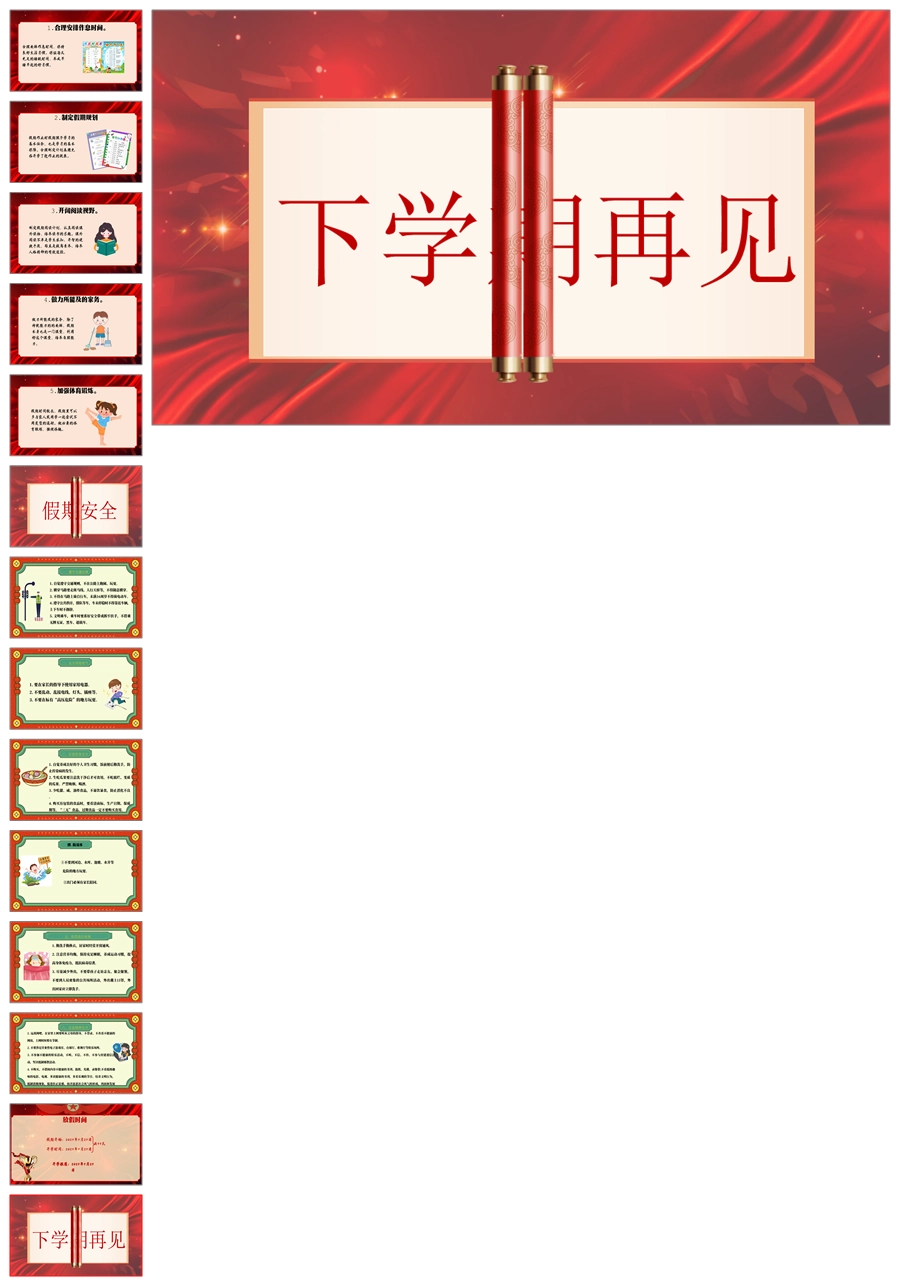 【8201】小学期末散学典礼班会散学典礼安全教育班会PPT(课件+讲稿)