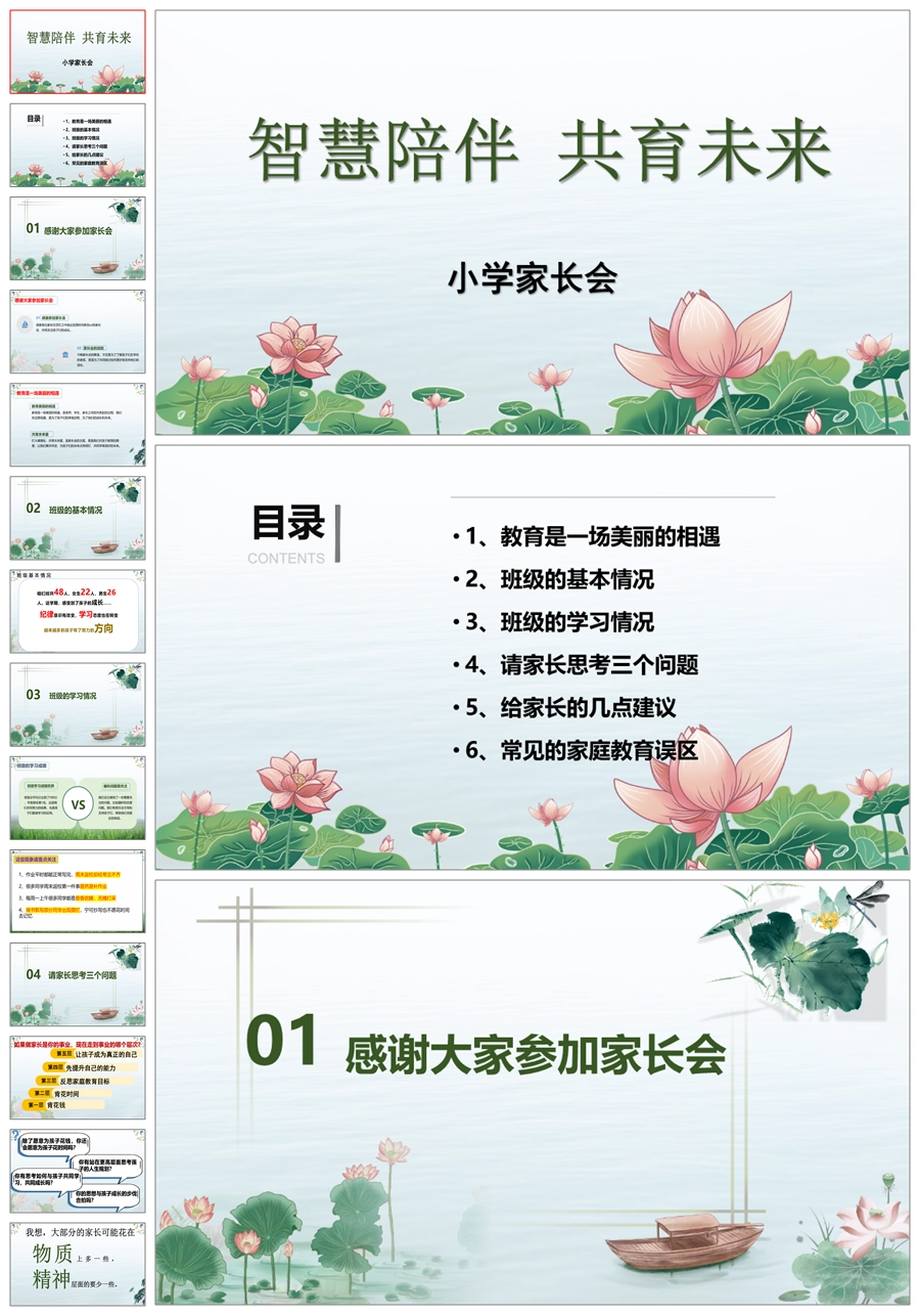 【8240】【小学家长会】《智慧陪伴共育未来》小学家长会PPT(课件+发言稿+暖场视频)