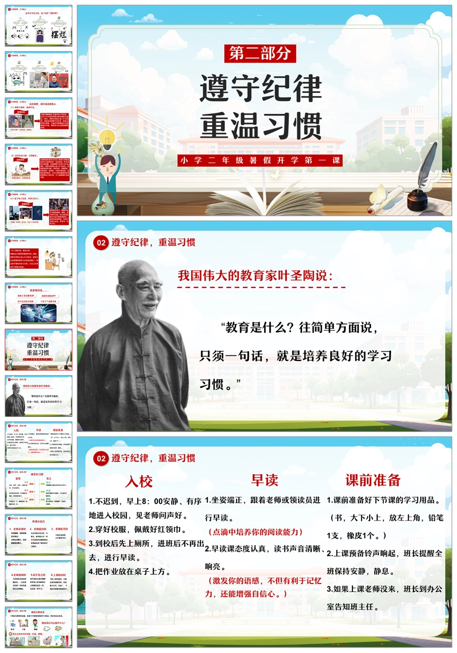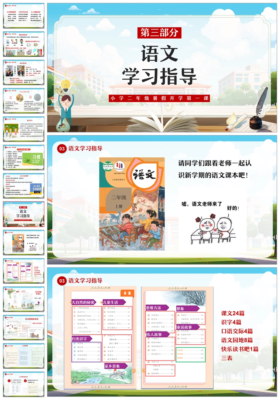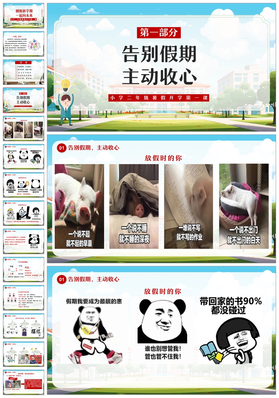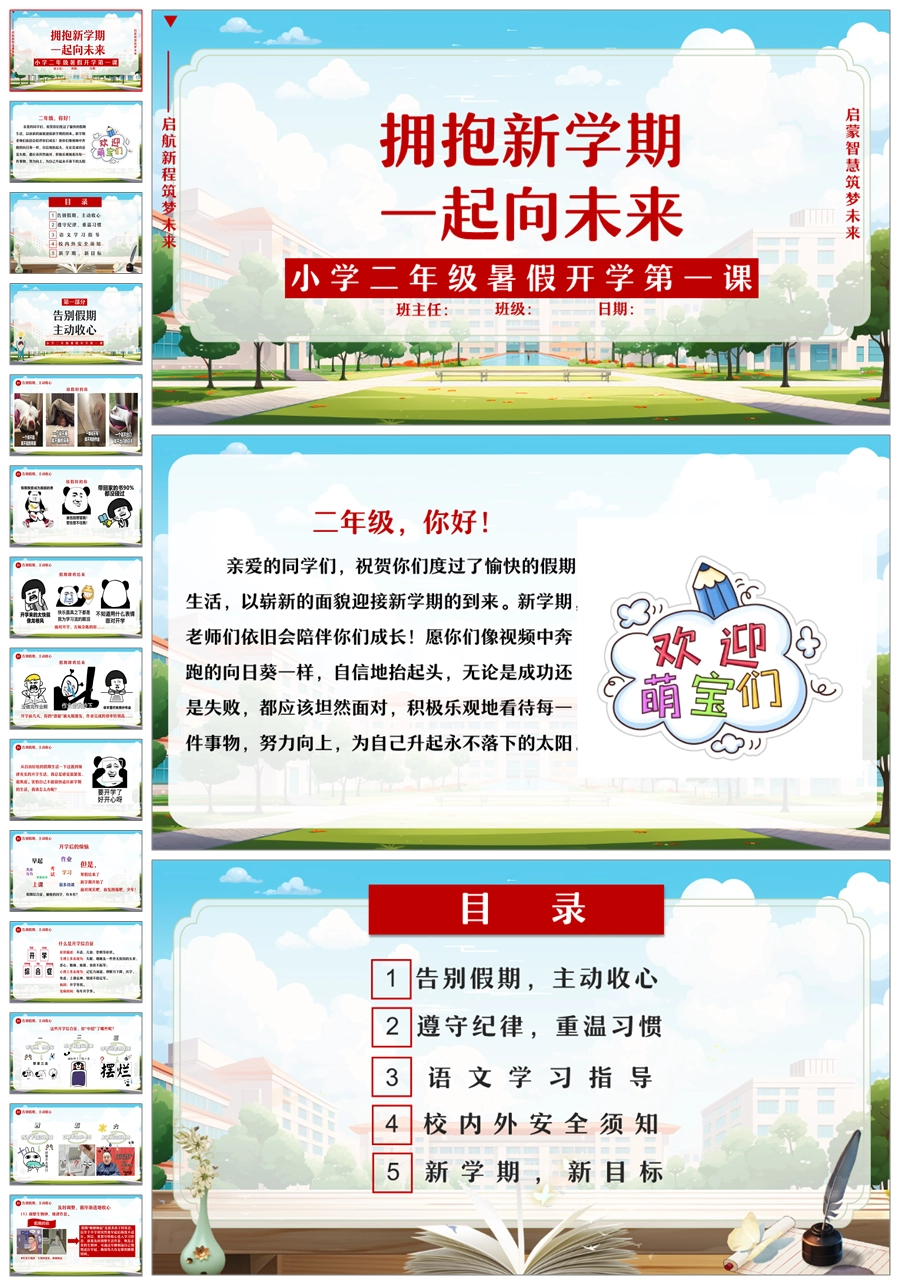 【8508】小学二年级第一学期暑假开学第一课《拥抱新学期》PPT课件+逐字稿