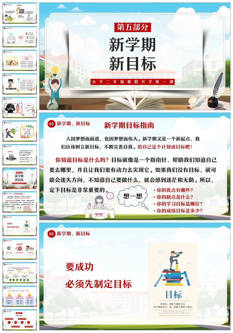 首页 小学班会 【8508】小学二年级第一学期暑假开学第一课《拥抱新学期》PPT课件+逐字稿