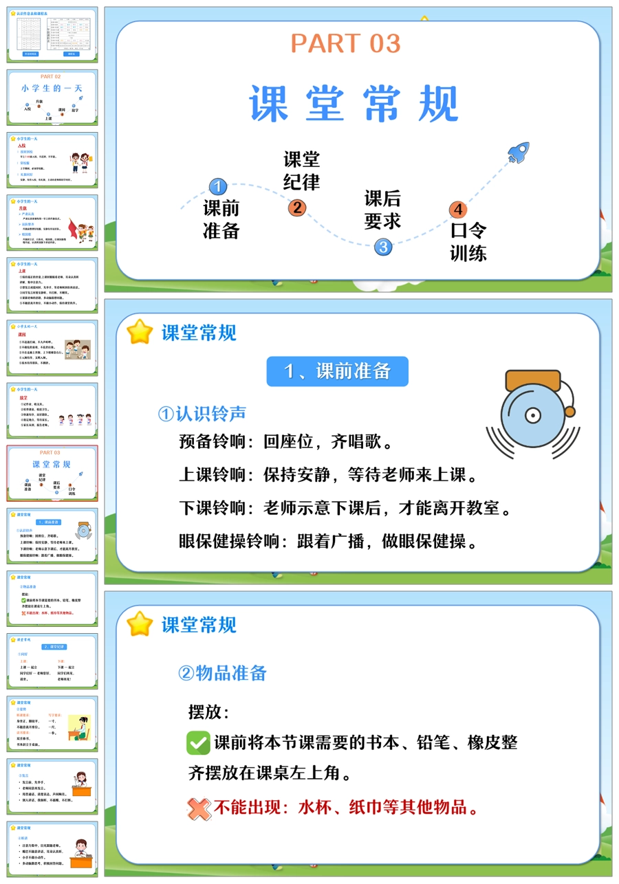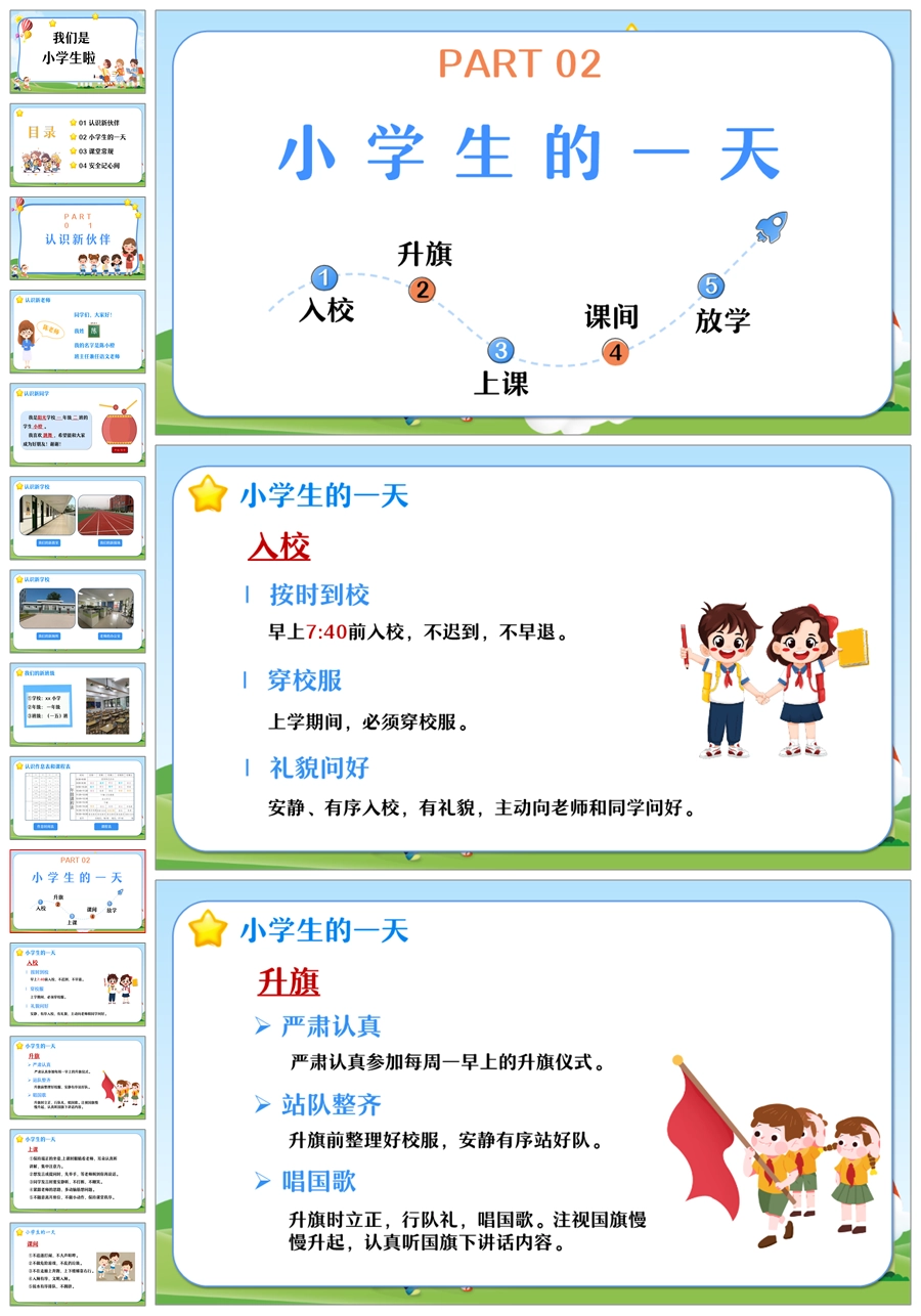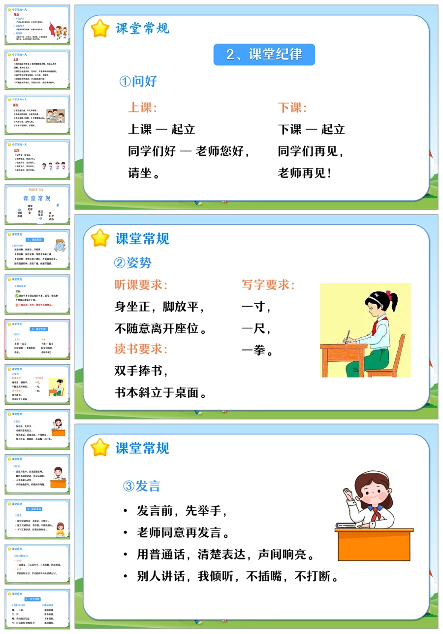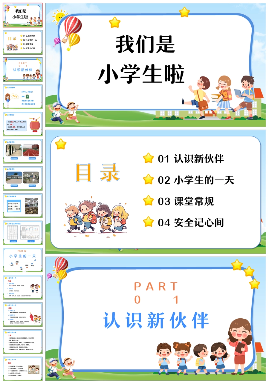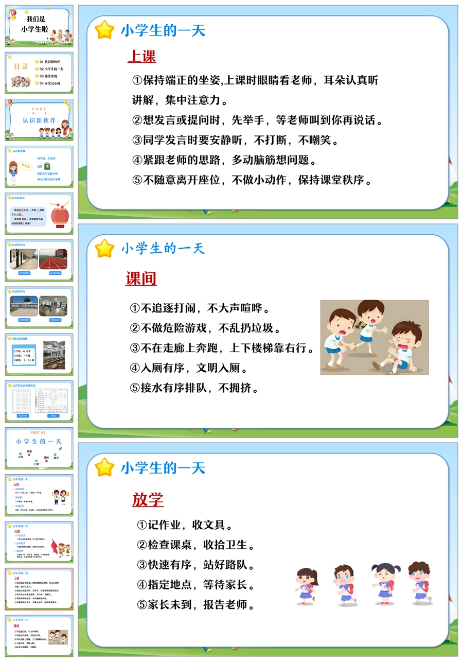 【8509】《我们是小学生啦》一年级开学第一课常规教育PPT课件+逐字稿