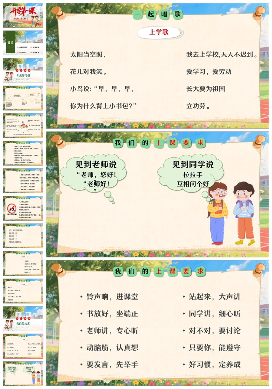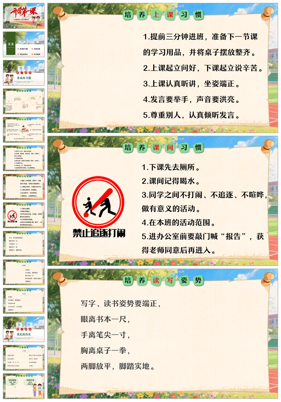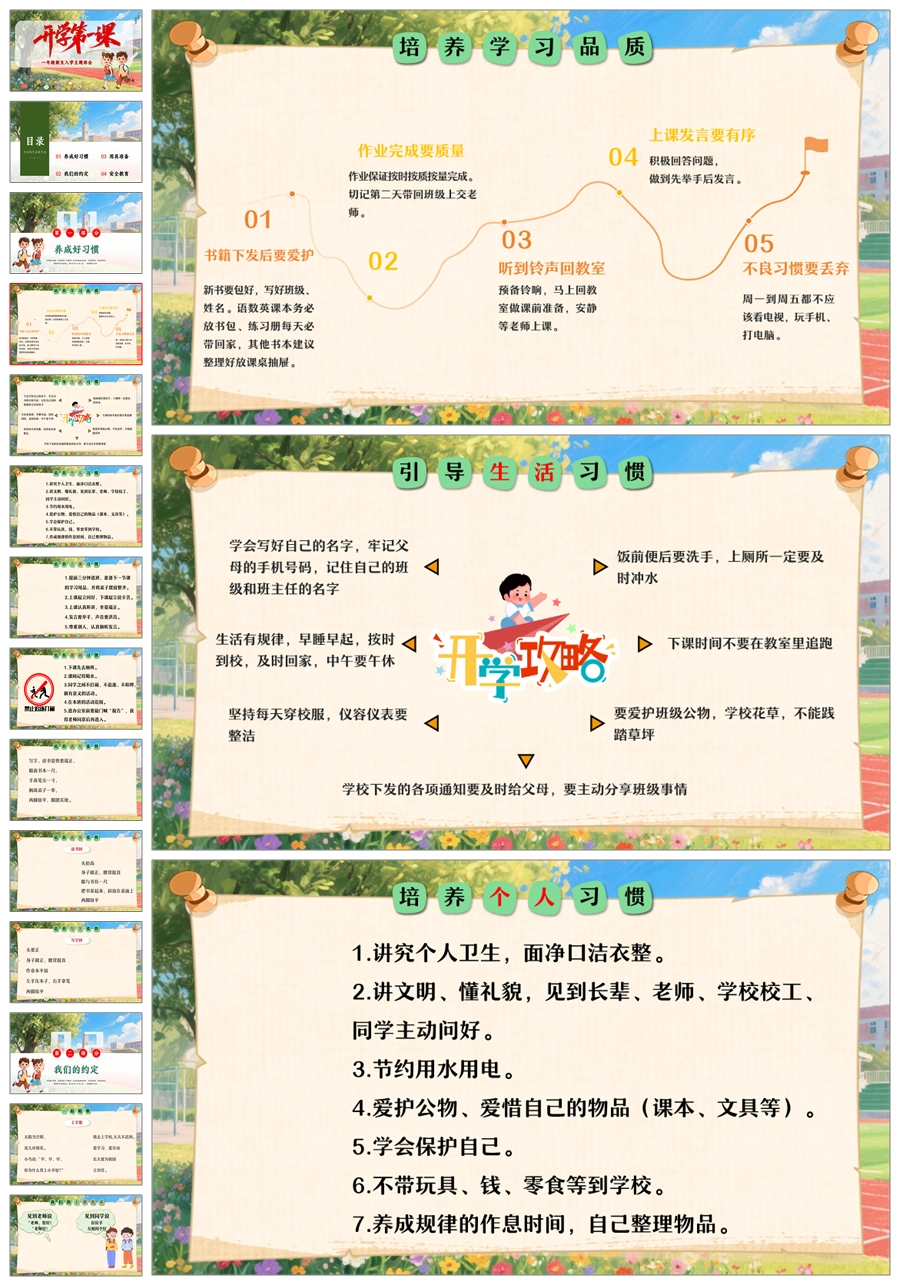 【8516】小学一年级开学第一课小学新生入学常规教育安全教育ppt+发言稿+视频