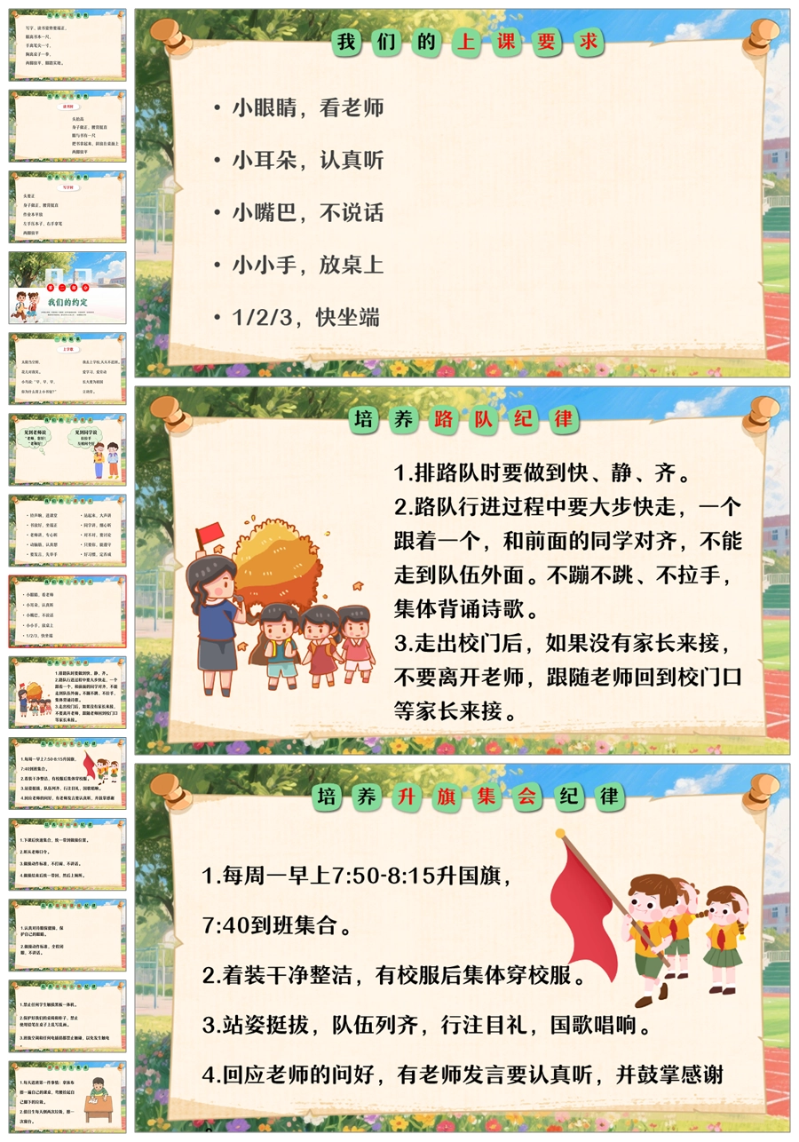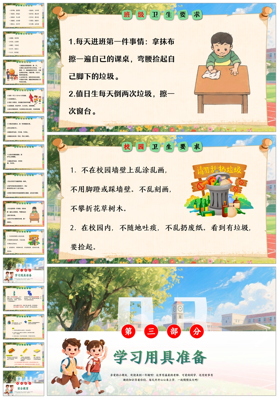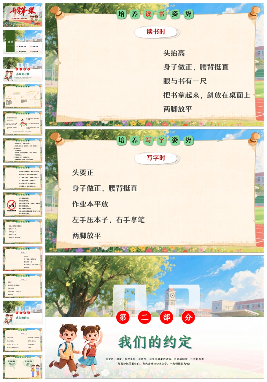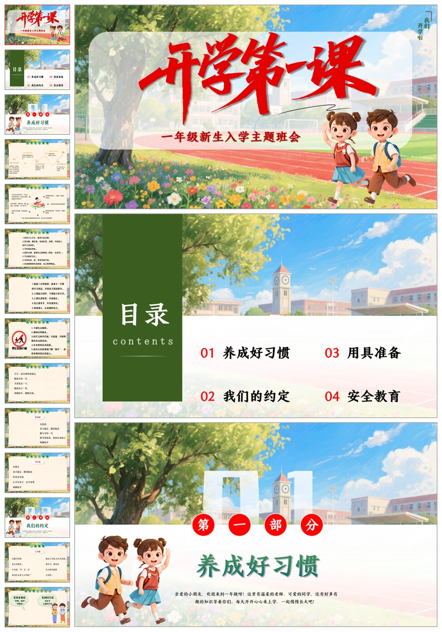 【8516】小学一年级开学第一课小学新生入学常规教育安全教育ppt+发言稿+视频