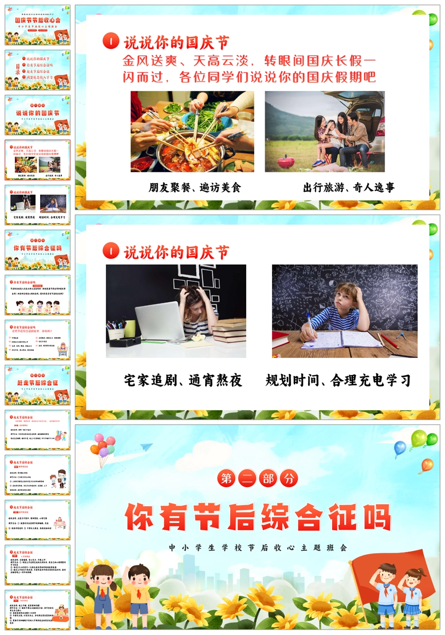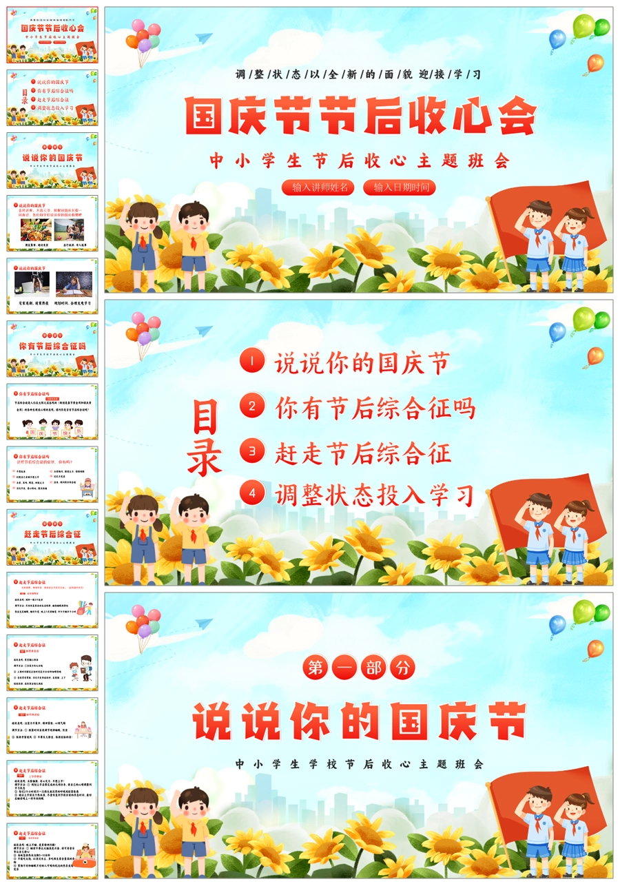【8572】中小学国庆节节后收心班会ppt课件+发言稿