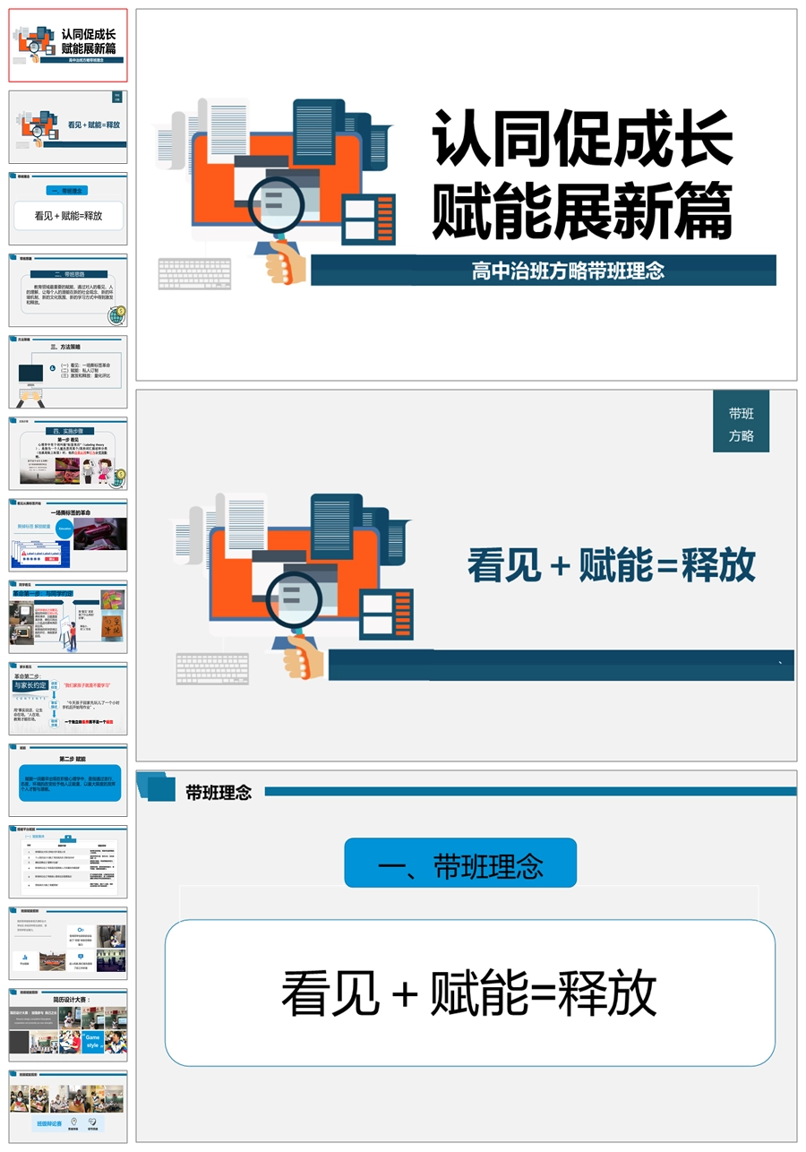 【8166】【经验交流】高中治班方略带班理念《认同促成长,赋能展新篇》班主任管理经验交流PPT(课件+讲话稿)
