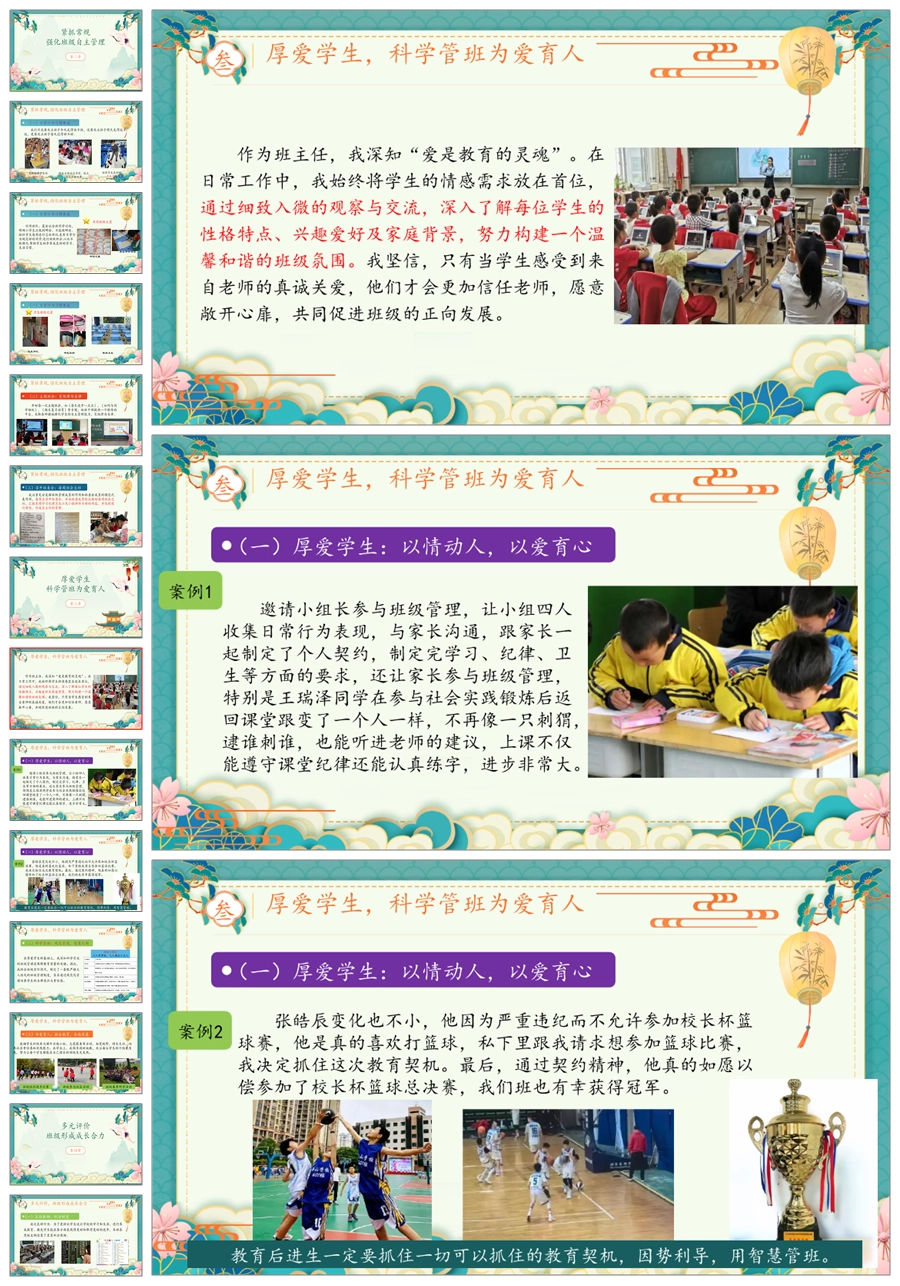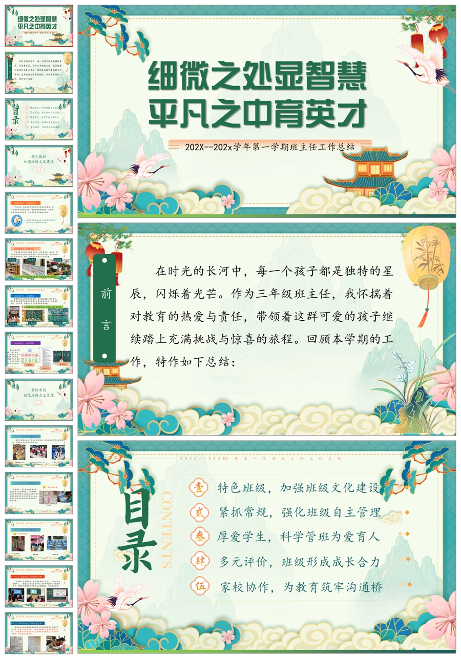 【8396】【工作总结】《细微之处显智慧,平凡之中育英才》班主任学期末工作总结PPT(课件+发言稿)
