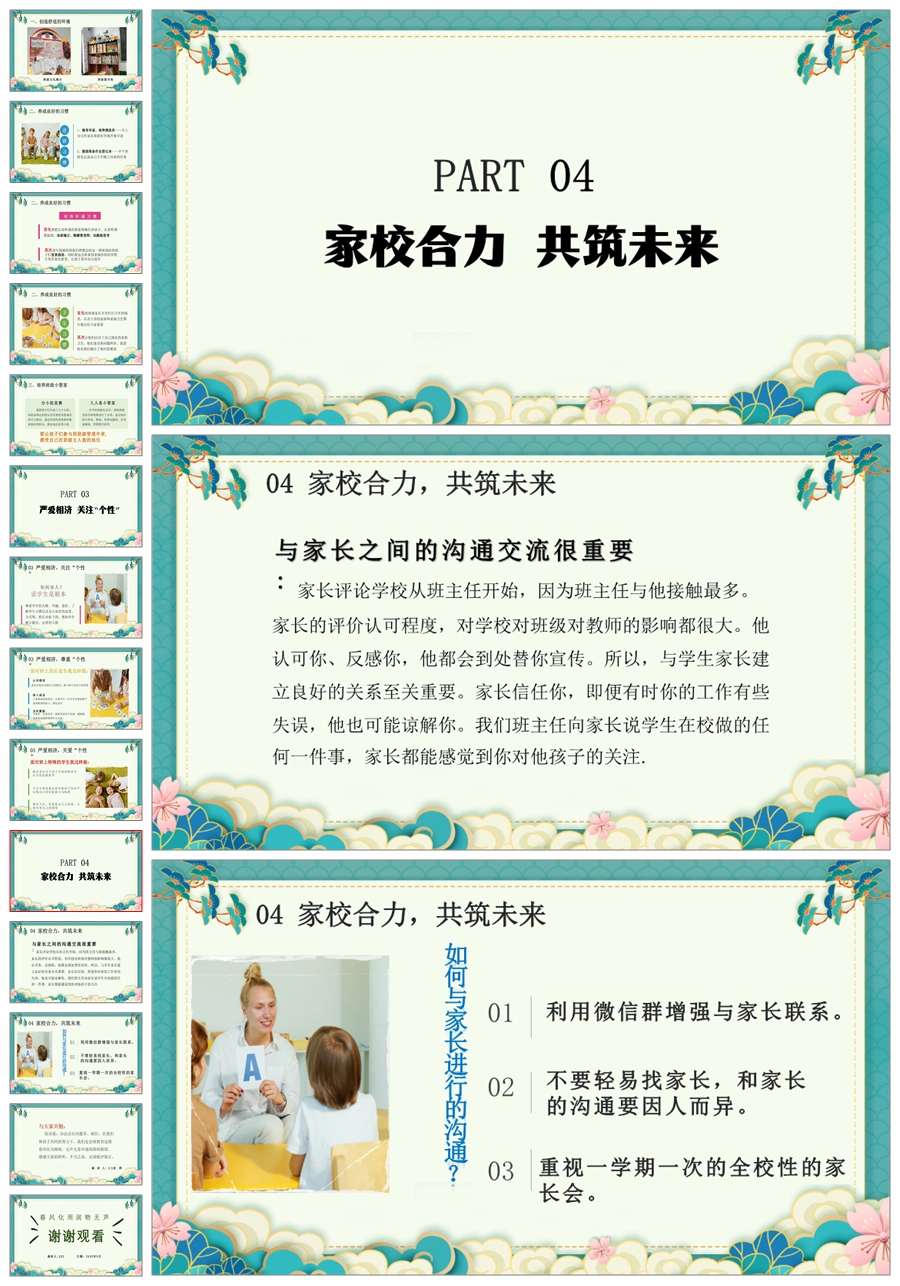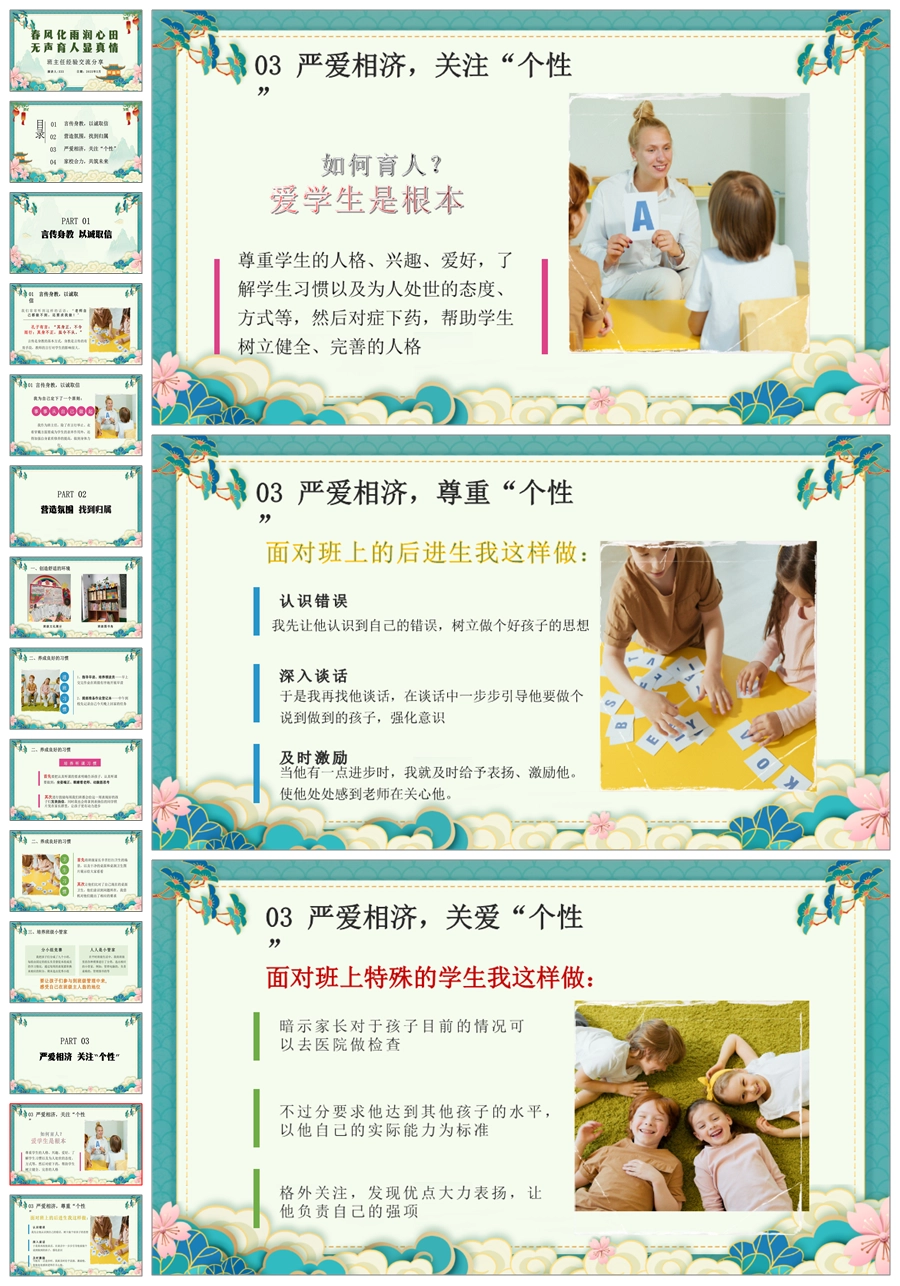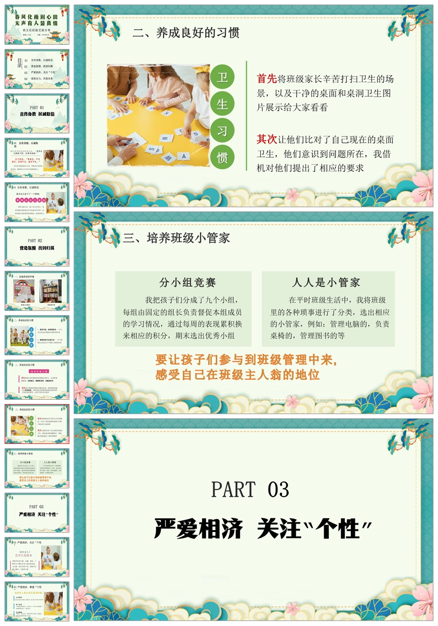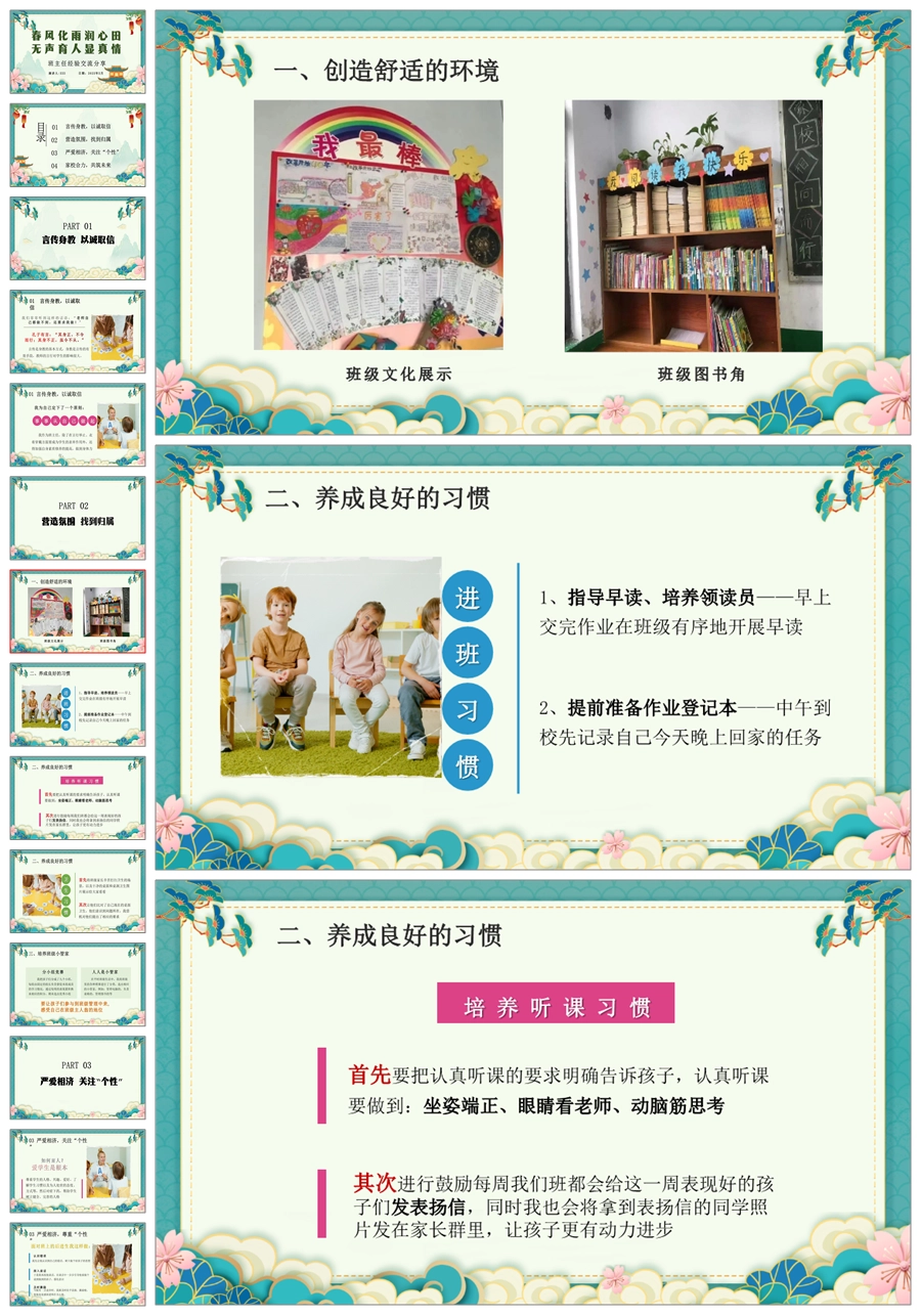 【8399】【经验交流】《春风化雨润心田》班主任工作经验交流PPT(课件+发言稿)