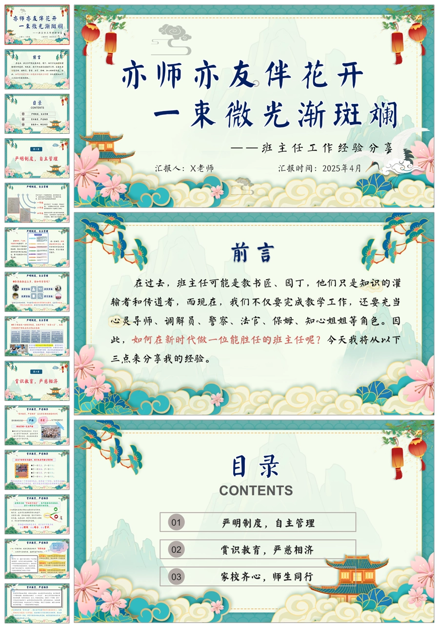 【8423】《亦师亦友伴花开》小学班主任工作经验分享PPT课件+发言稿