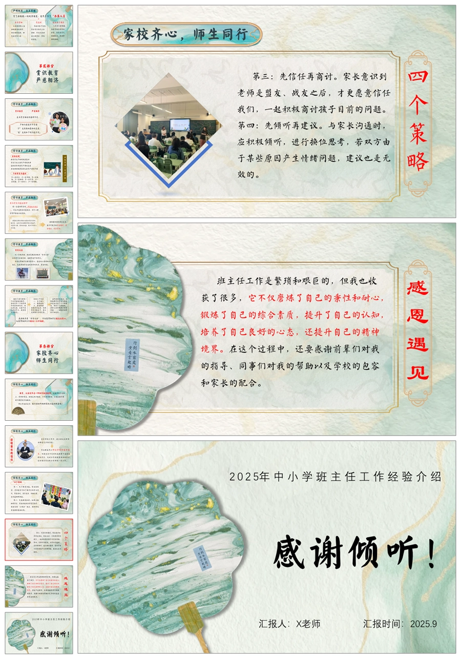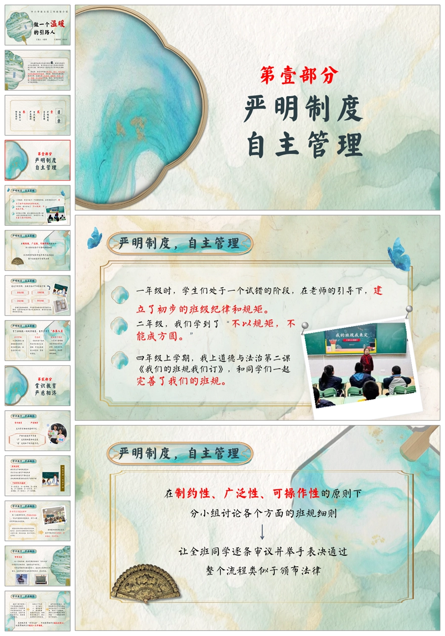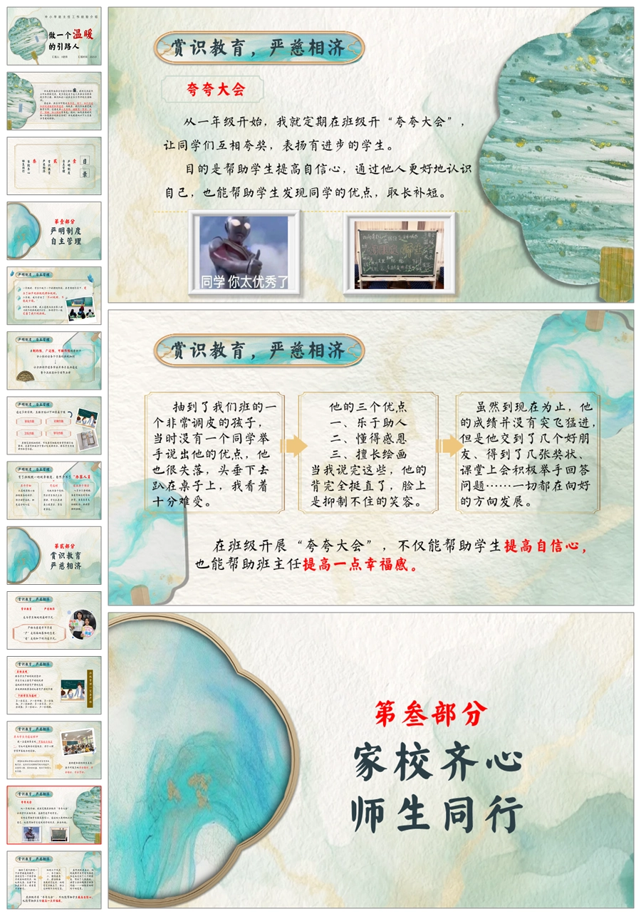 【8569】《做一个温暖的引路人》班主任工作经验分享ppt课件+发言稿