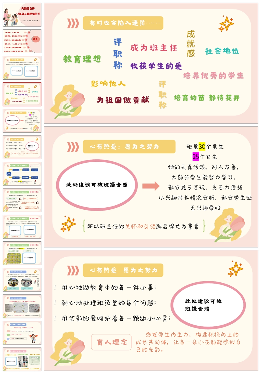 【8606】《向阳花自开,让每朵花都尽情的开》小学班主任工作经验分享ppt课件+发言稿