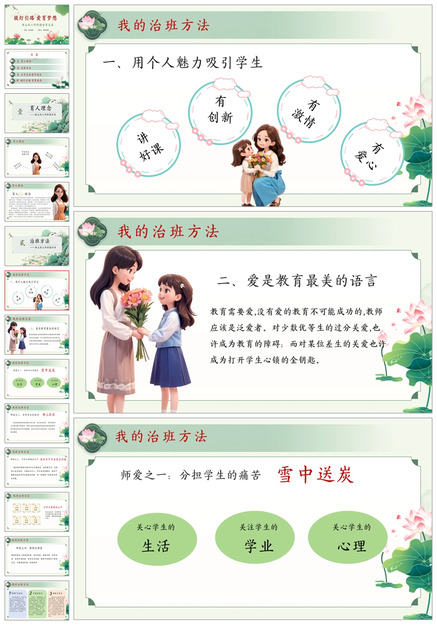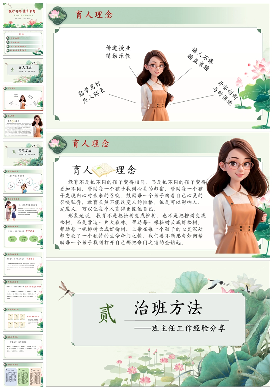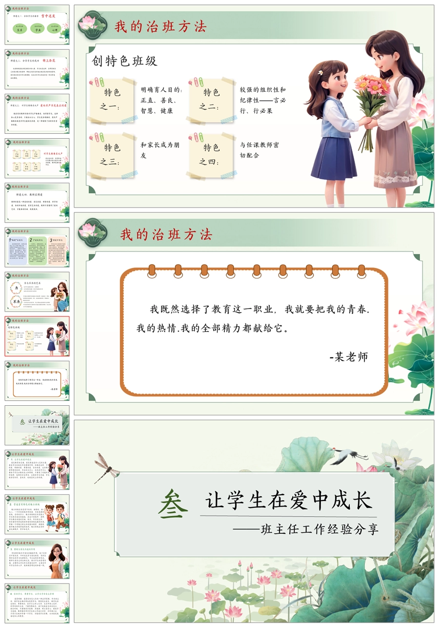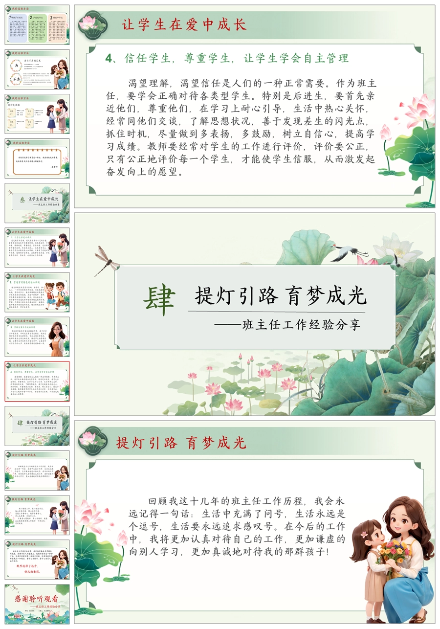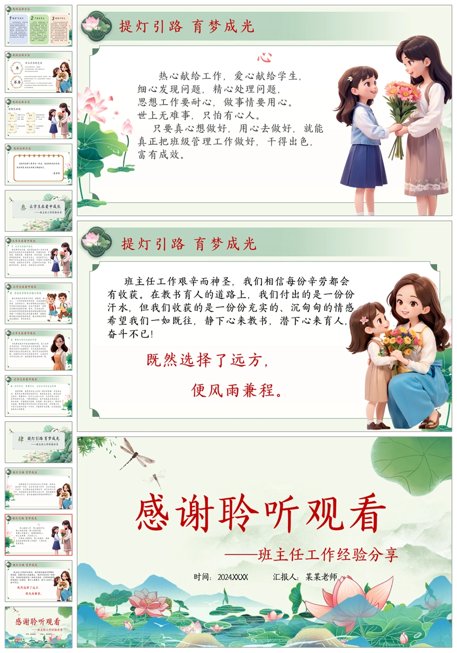 【9001】班主任工作经验交流分享《提灯引路爱育梦想》ppt+发言稿(共27张ppt)
