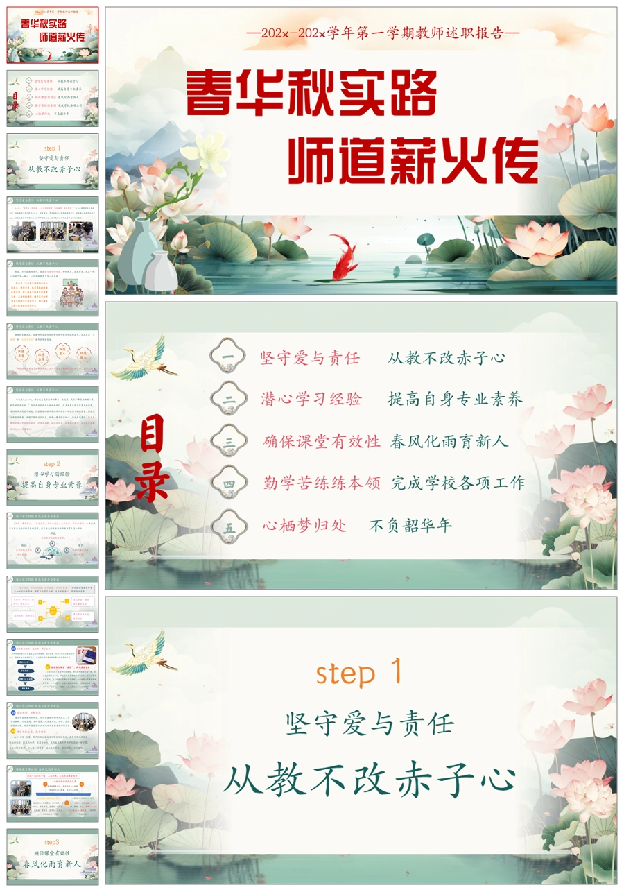 【8397】【述职报告】《春华秋实路,师道薪火传》教师述职报告PPT(课件+发言稿)