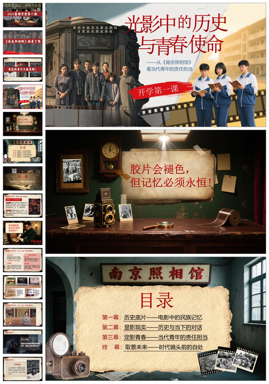 【8521】从《南京照相馆》看当代青年的责任担当新学期开学第一课ppt课件+发言稿(不发布)