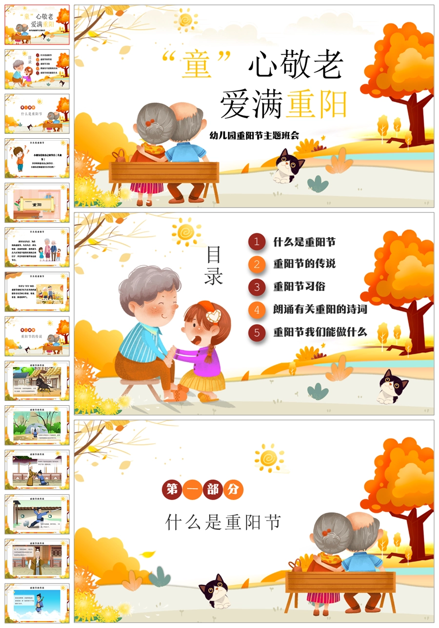 【8596】幼儿园重阳节主题班会ppt课件+教案
