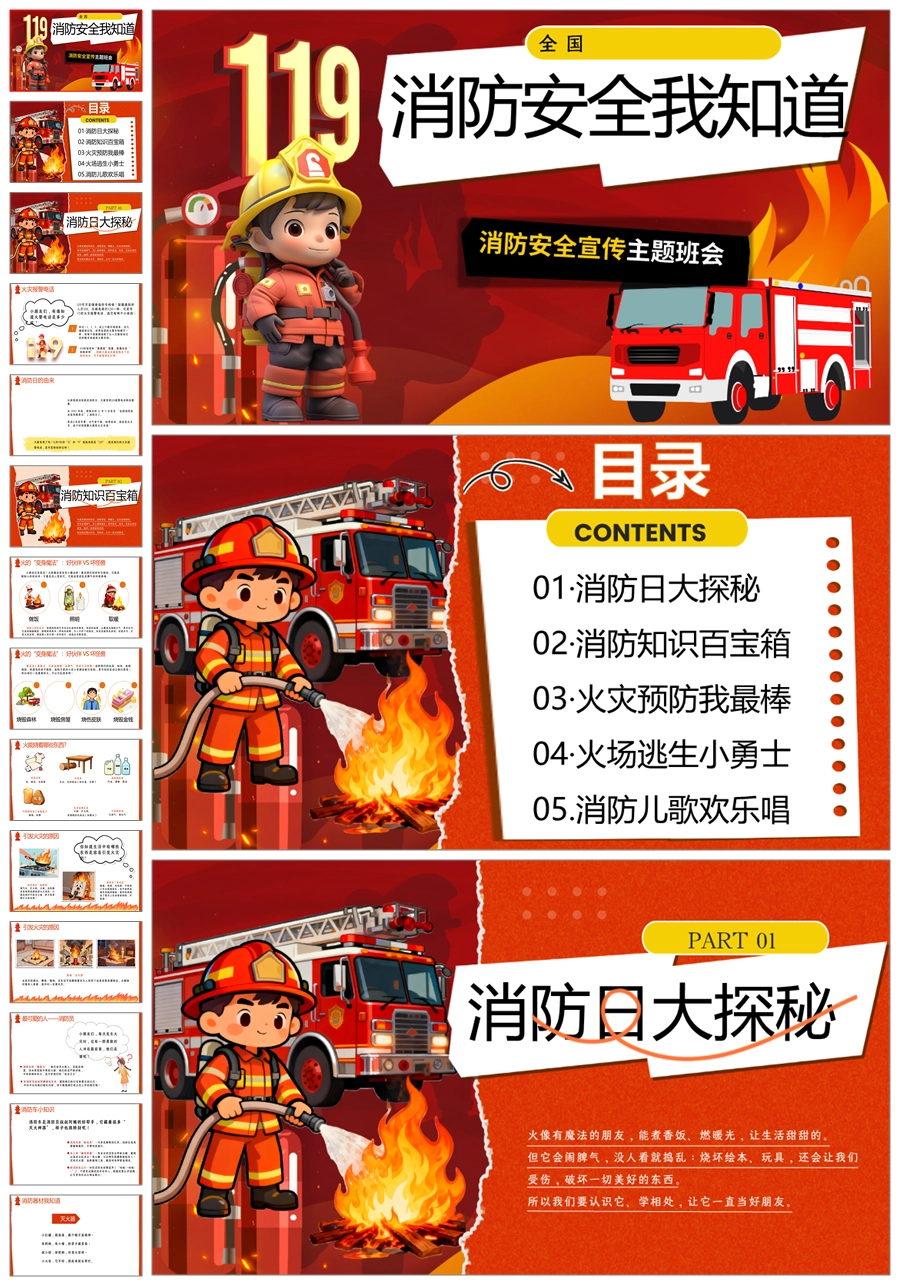 【8611】《消防安全我知道》幼儿园消防安全日主题班会ppt课件+教案+视频