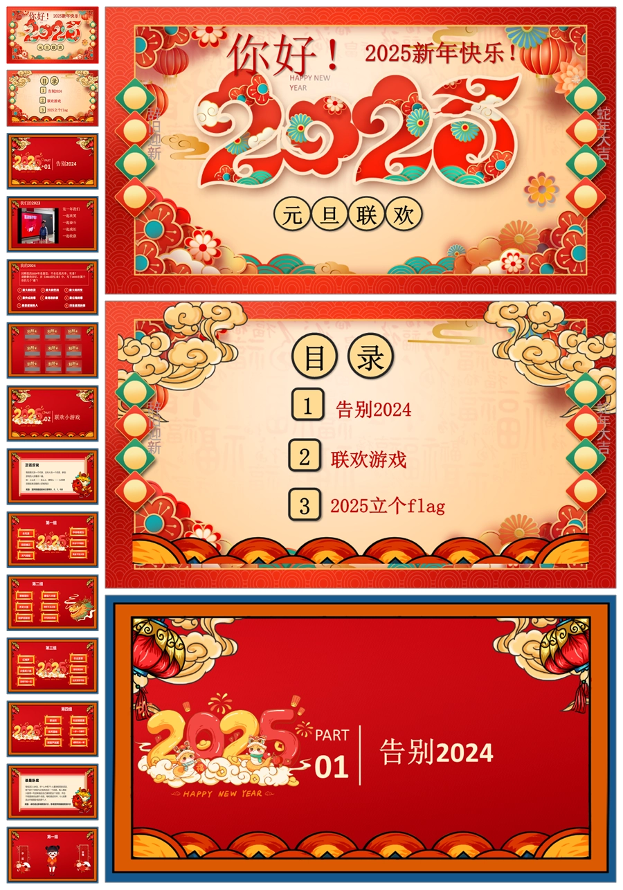【8217】【元旦活动】2025元旦期末联欢会班会课PPT课件活动策划及讲稿