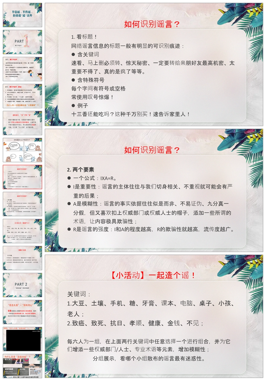 【8486】校园文明礼仪主题班会《不信谣不传谣》ppt课件+教案