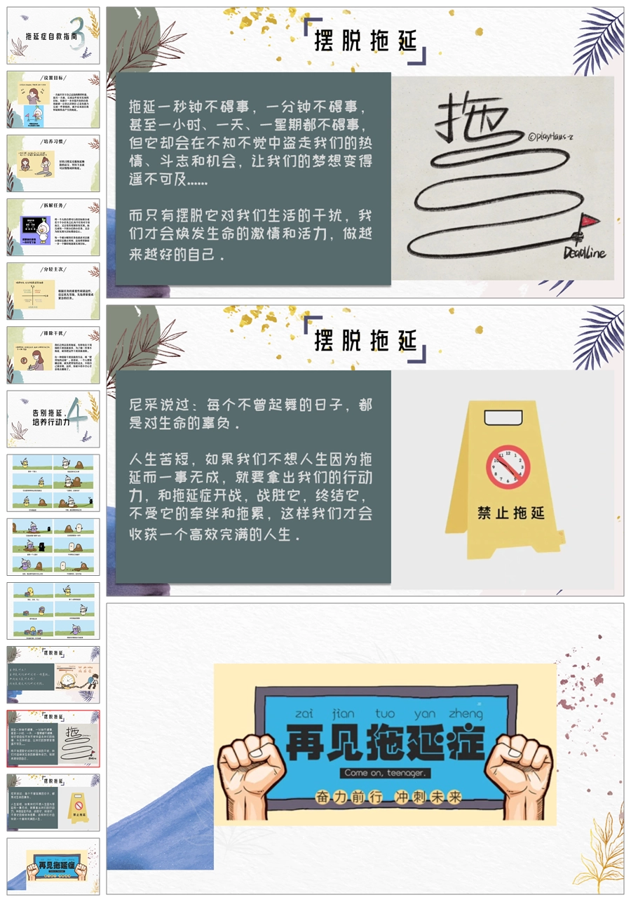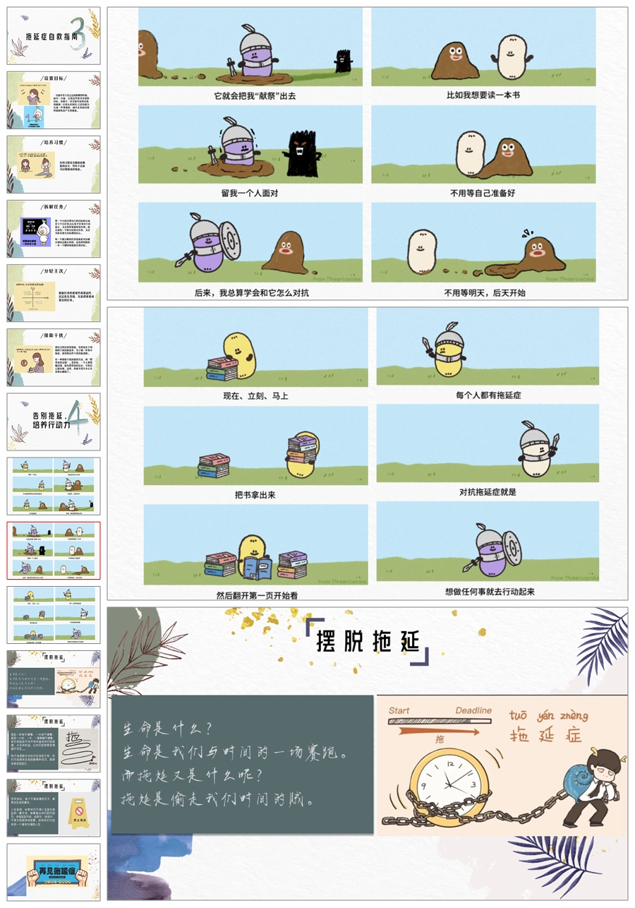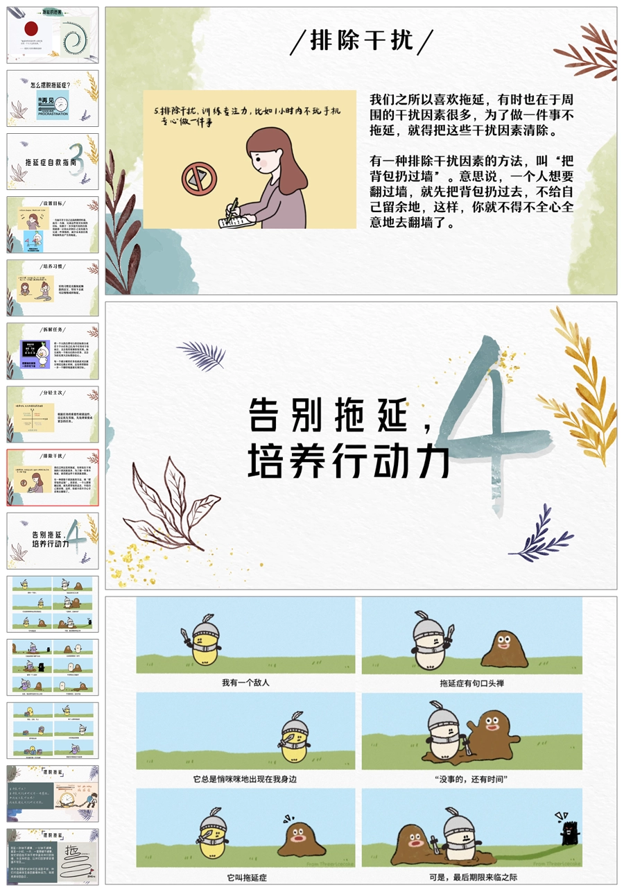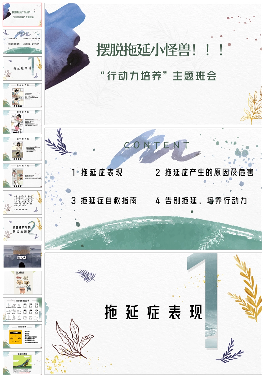 【8487】《摆脱拖延小怪兽》行动力培养主题班会ppt课件+逐字稿+视频
