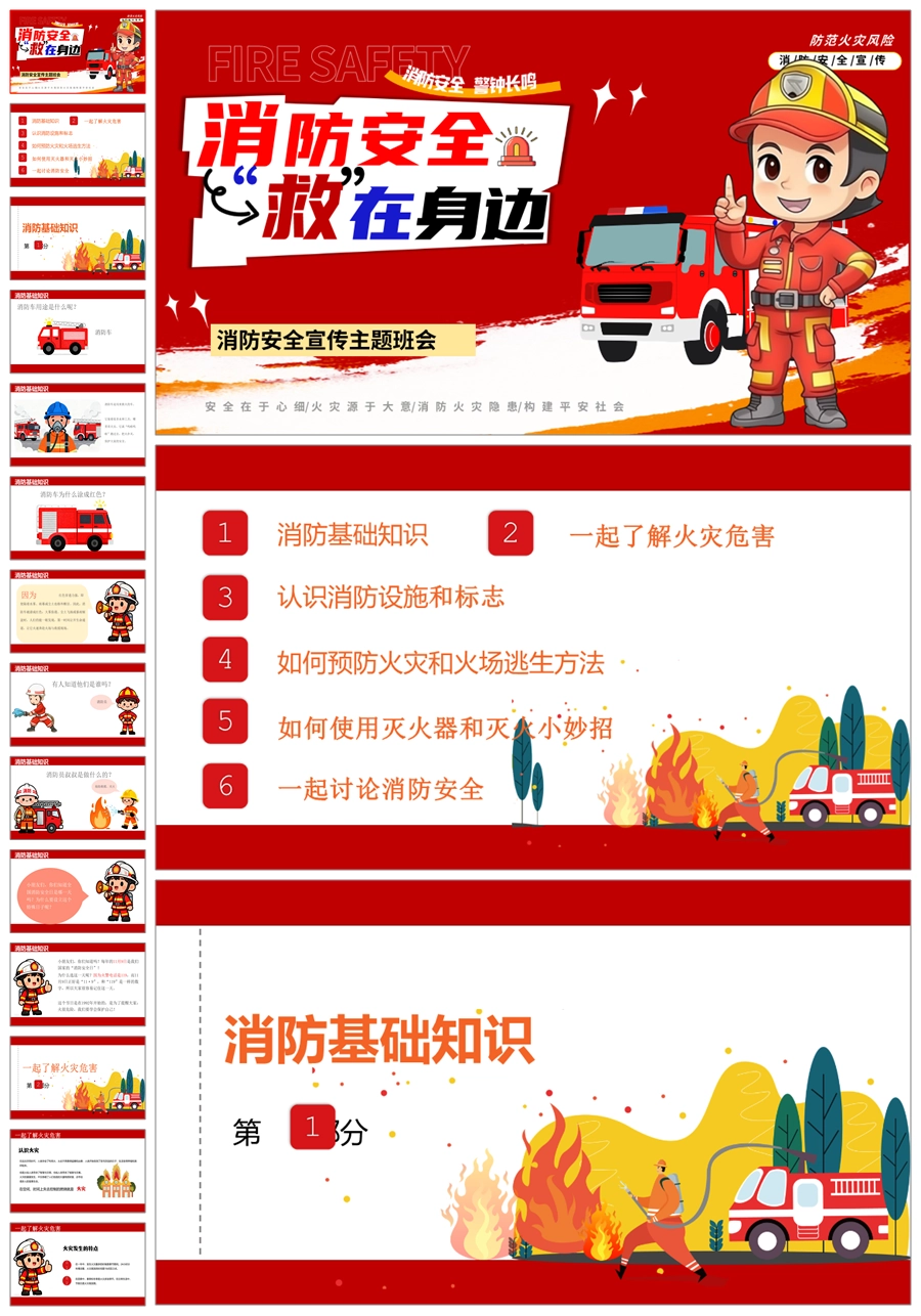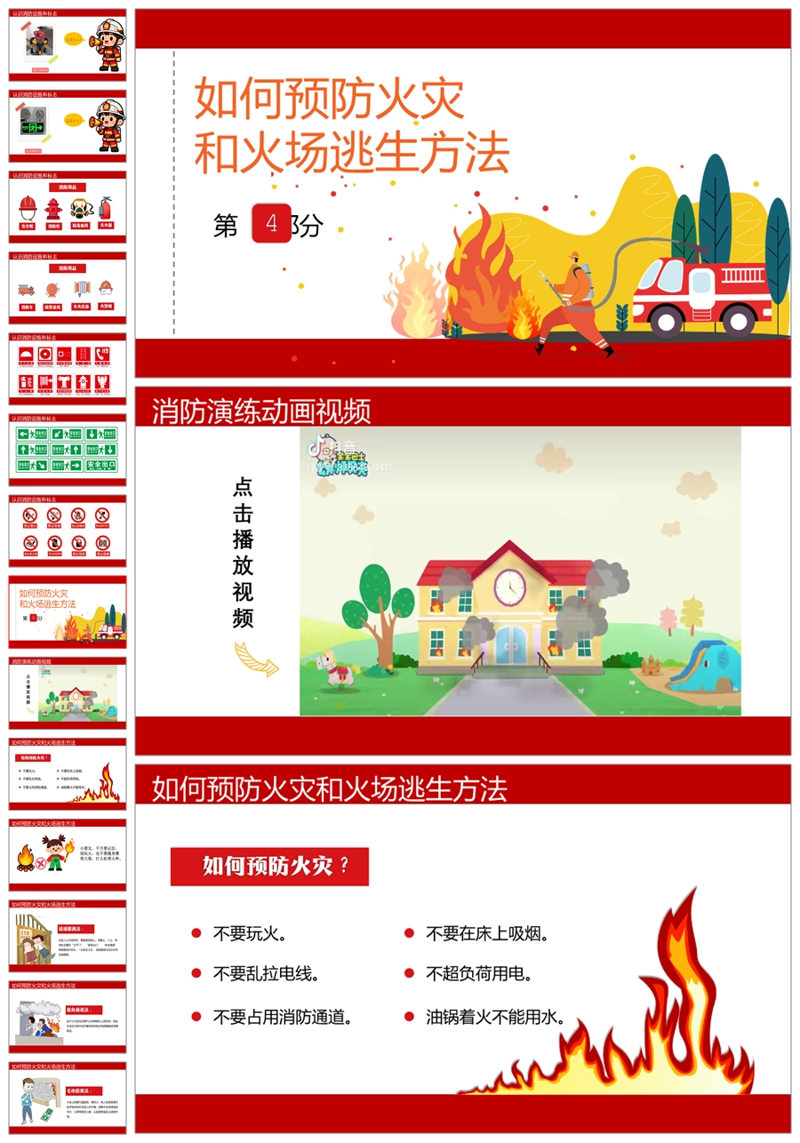【8608】《消防安全救在身边》消防安全宣传主题班会+视频+逐字稿+教案
