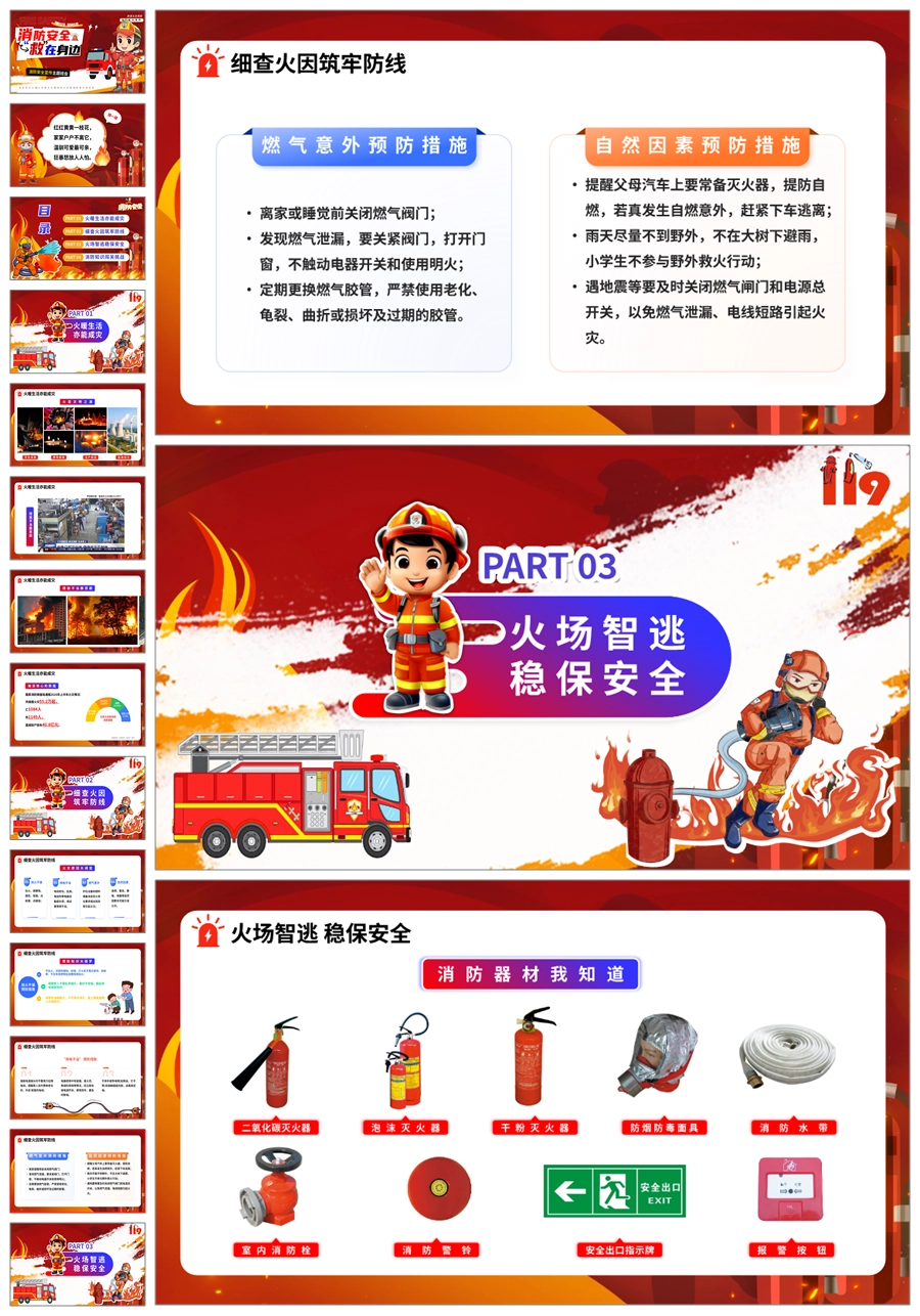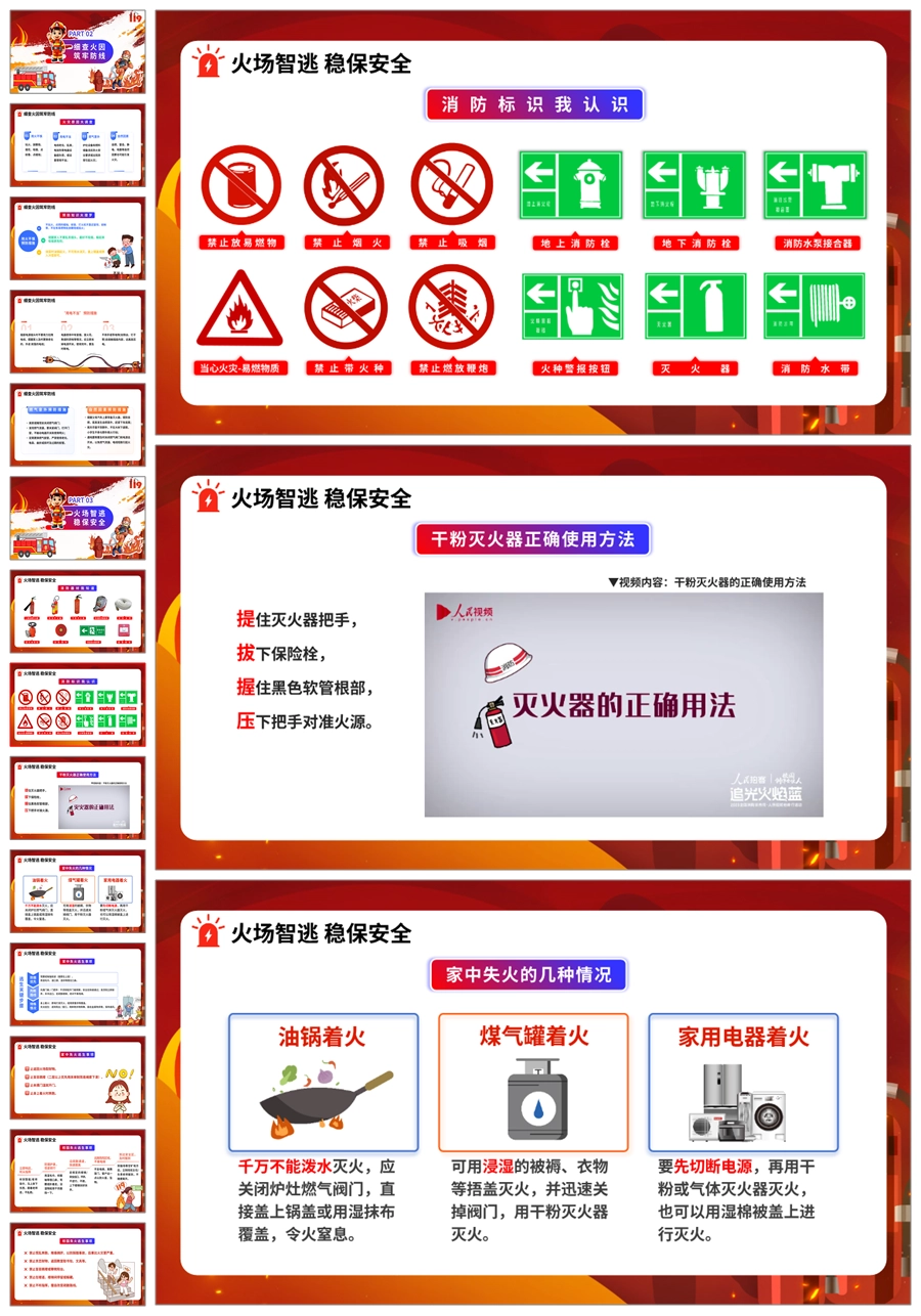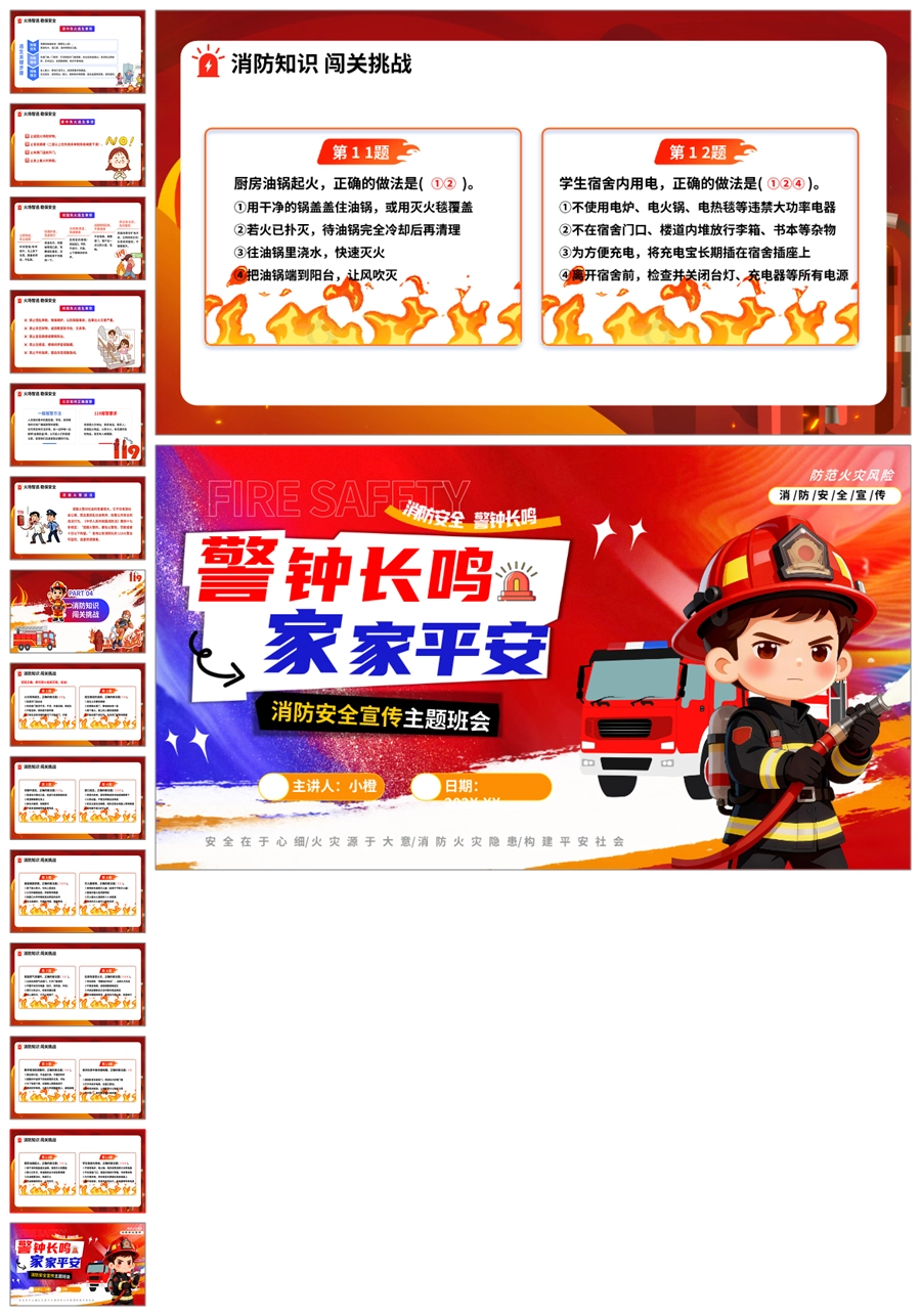 【8609】《消防安全救在身边》消防安全宣传主题班会ppt课件+教案+主持稿+视频
