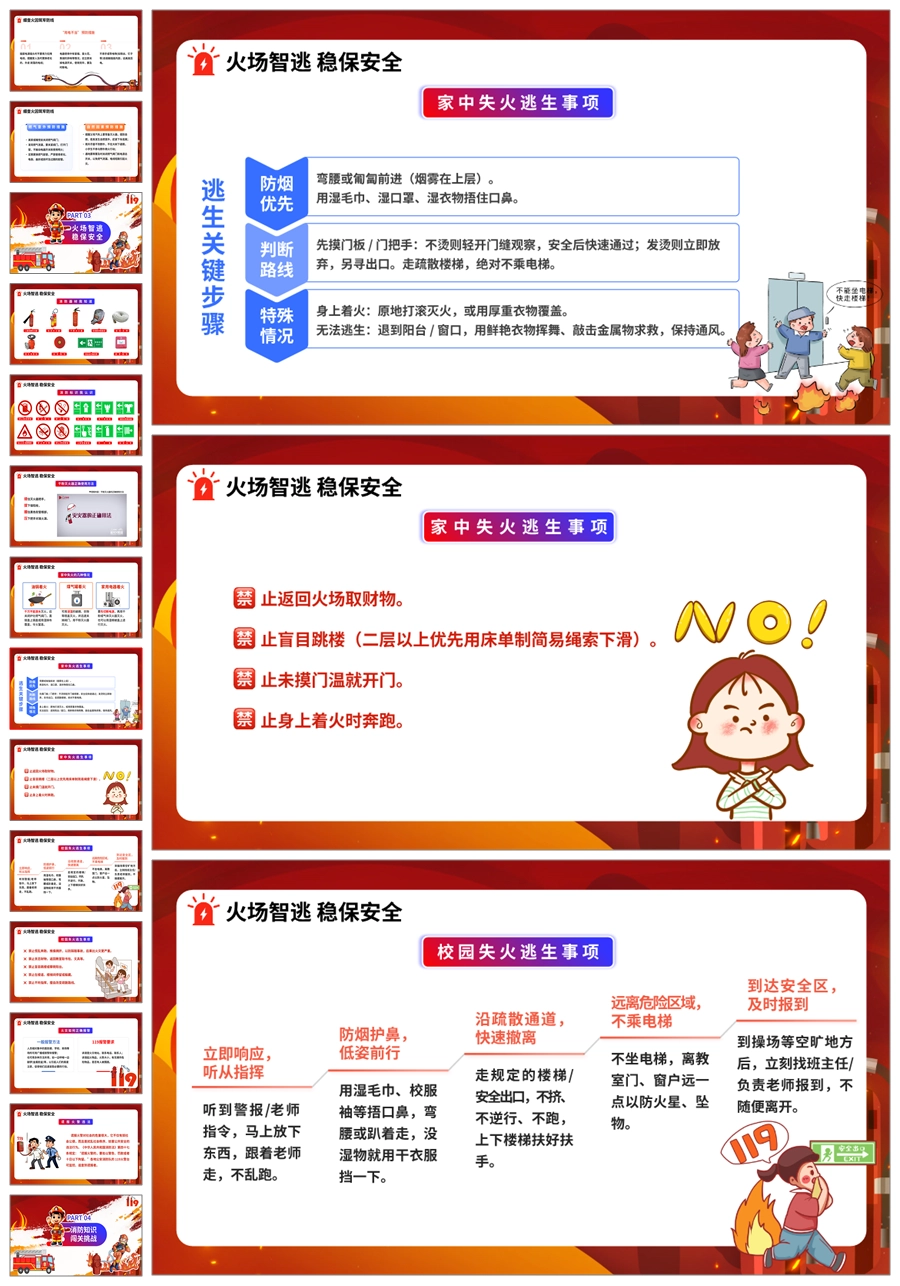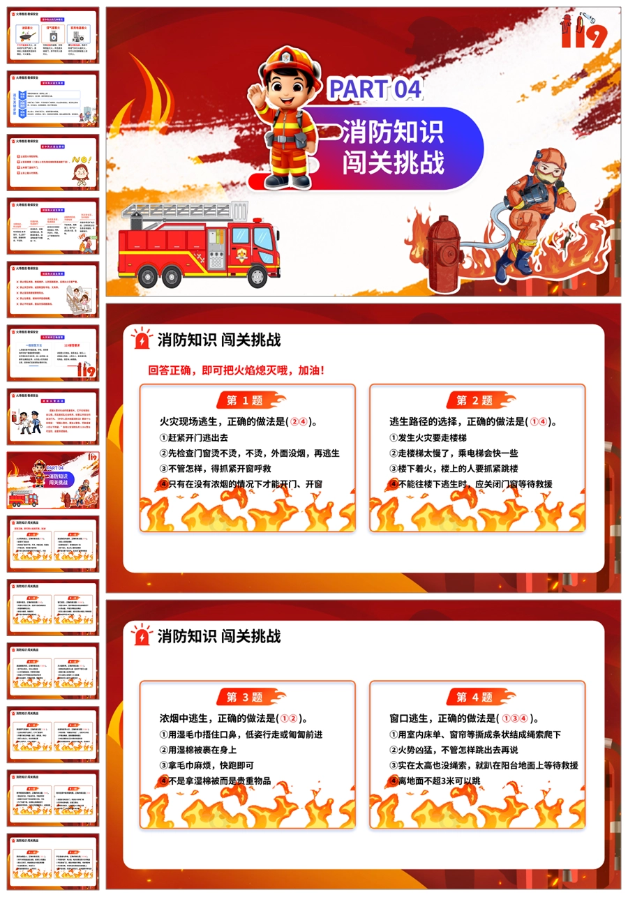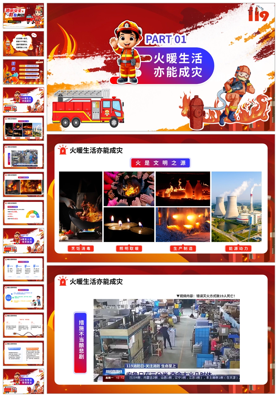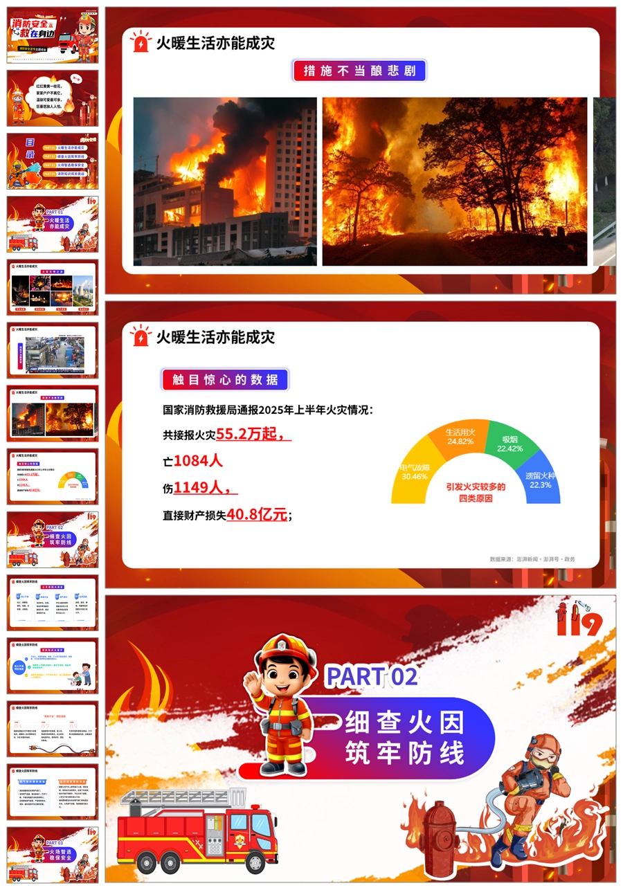 【8609】《消防安全救在身边》消防安全宣传主题班会ppt课件+教案+主持稿+视频