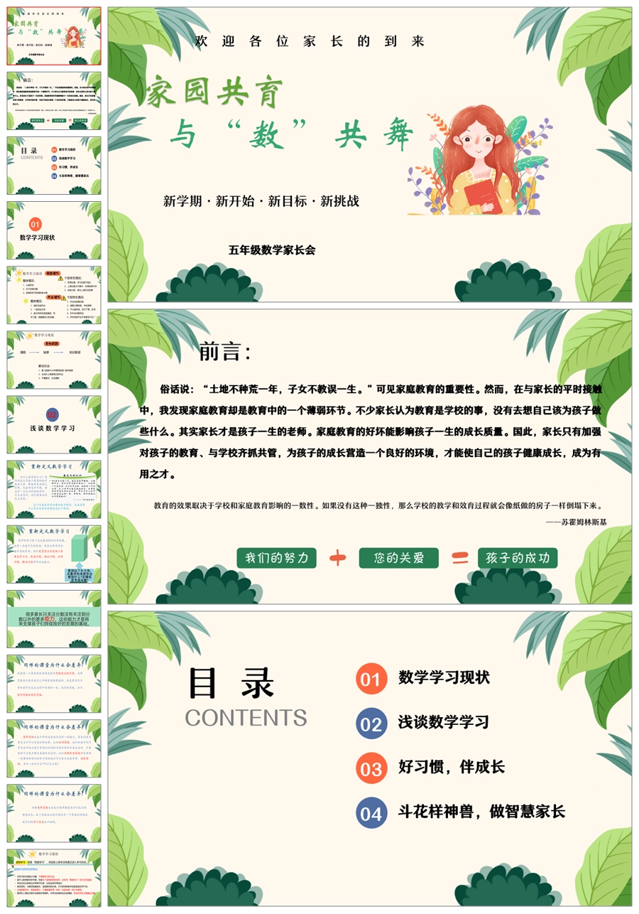 【5127】【五年级】数学家长会【家园共育,与数共舞】好孩子一定是管出来的五年级家长会ppt课件+发言稿