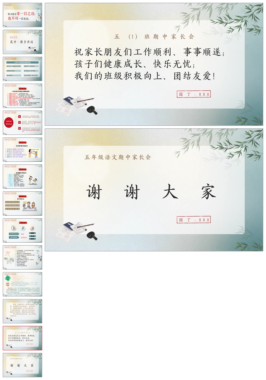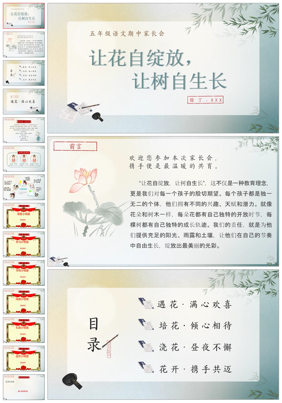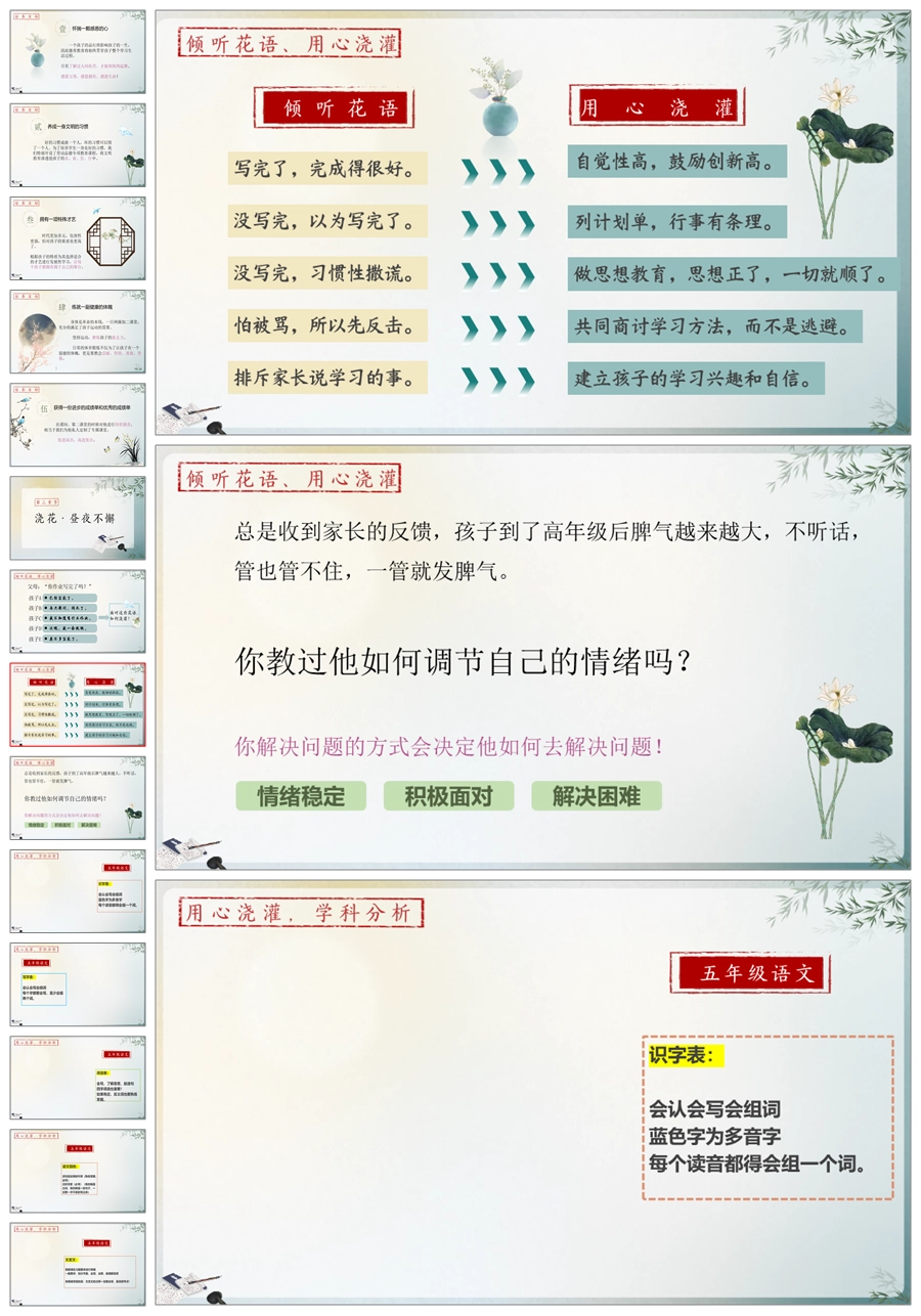 【5130】【五上】【语文】【让花自绽放,让树自生长】期中家长会五年级家长会ppt课件+发言稿