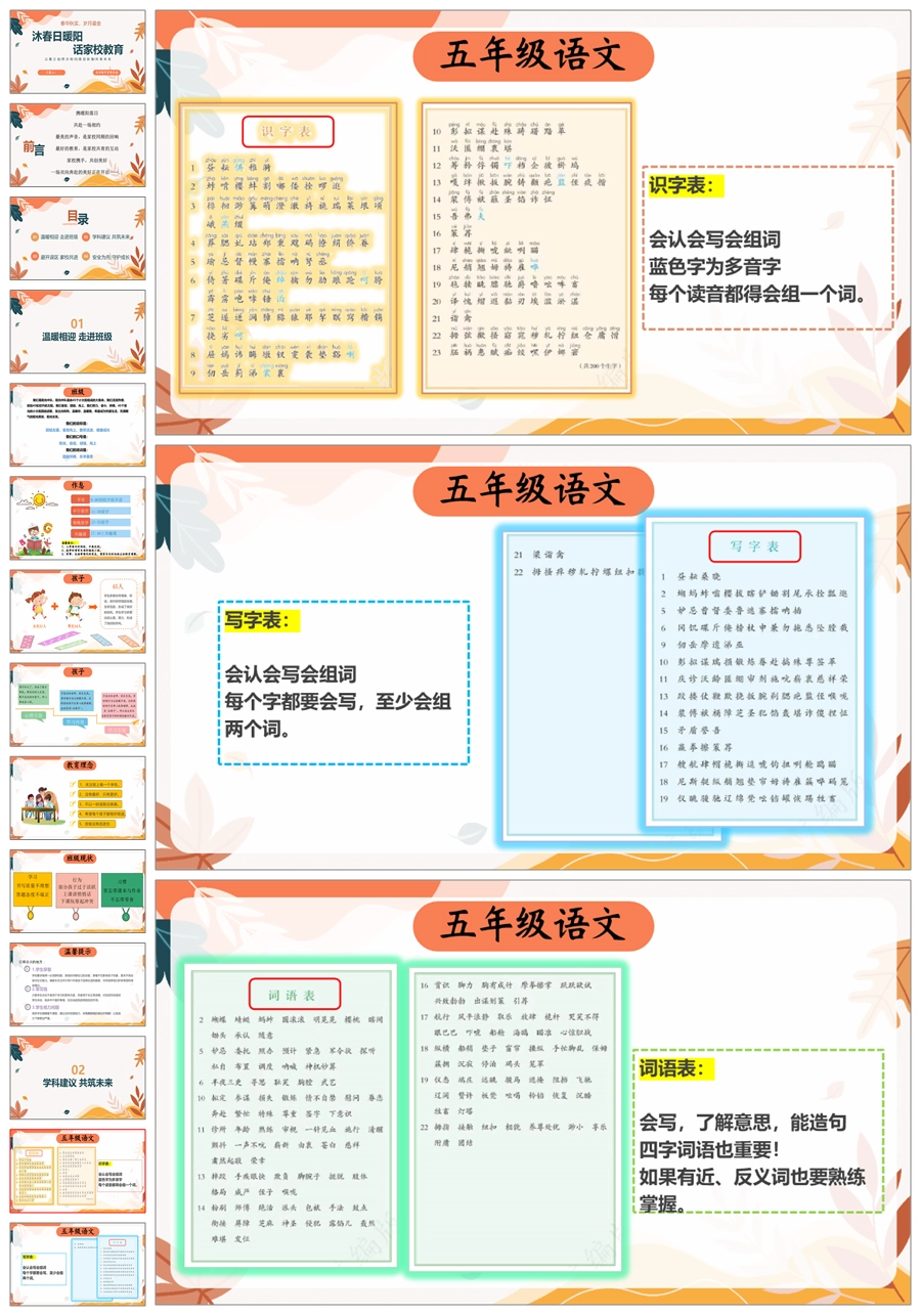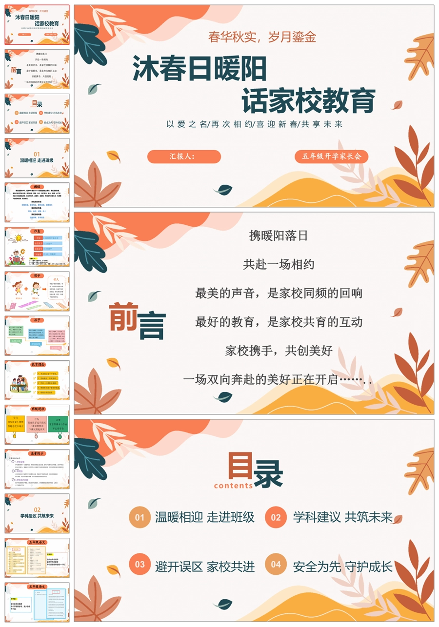 【5133】【五下】【沐春日暖阳 话家校教育】开学家长会-语文版五年级家长会ppt课件+发言稿