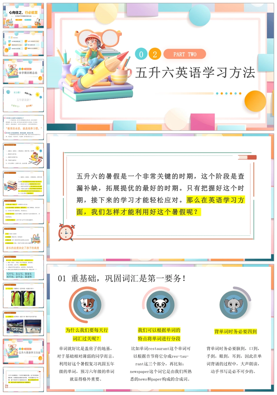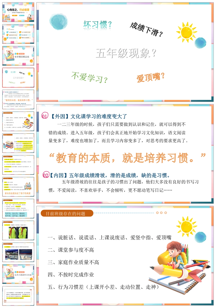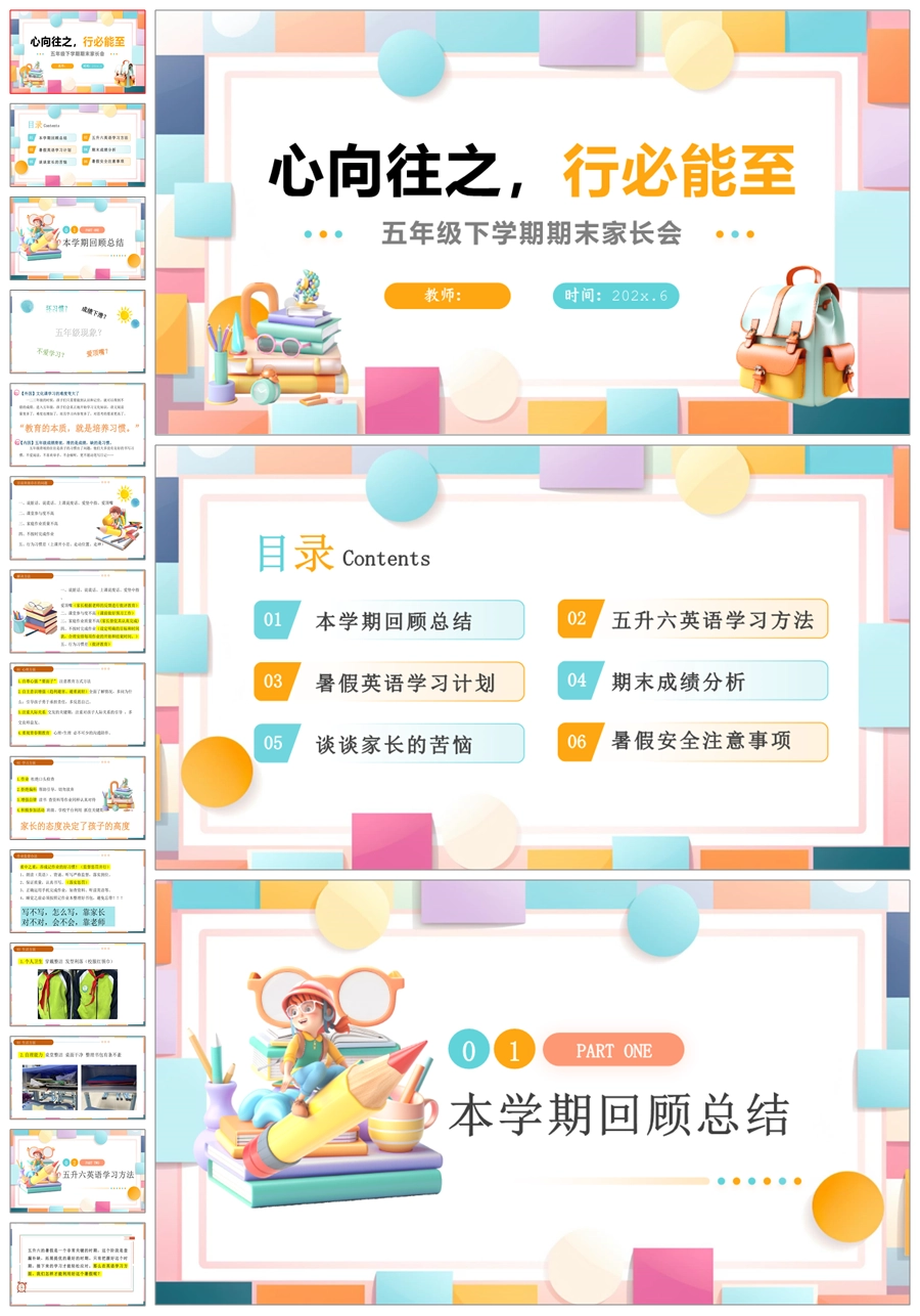 【5134】【五下】【英语】【心向往之 行必能至】期末家长会五年级家长会ppt课件+发言稿