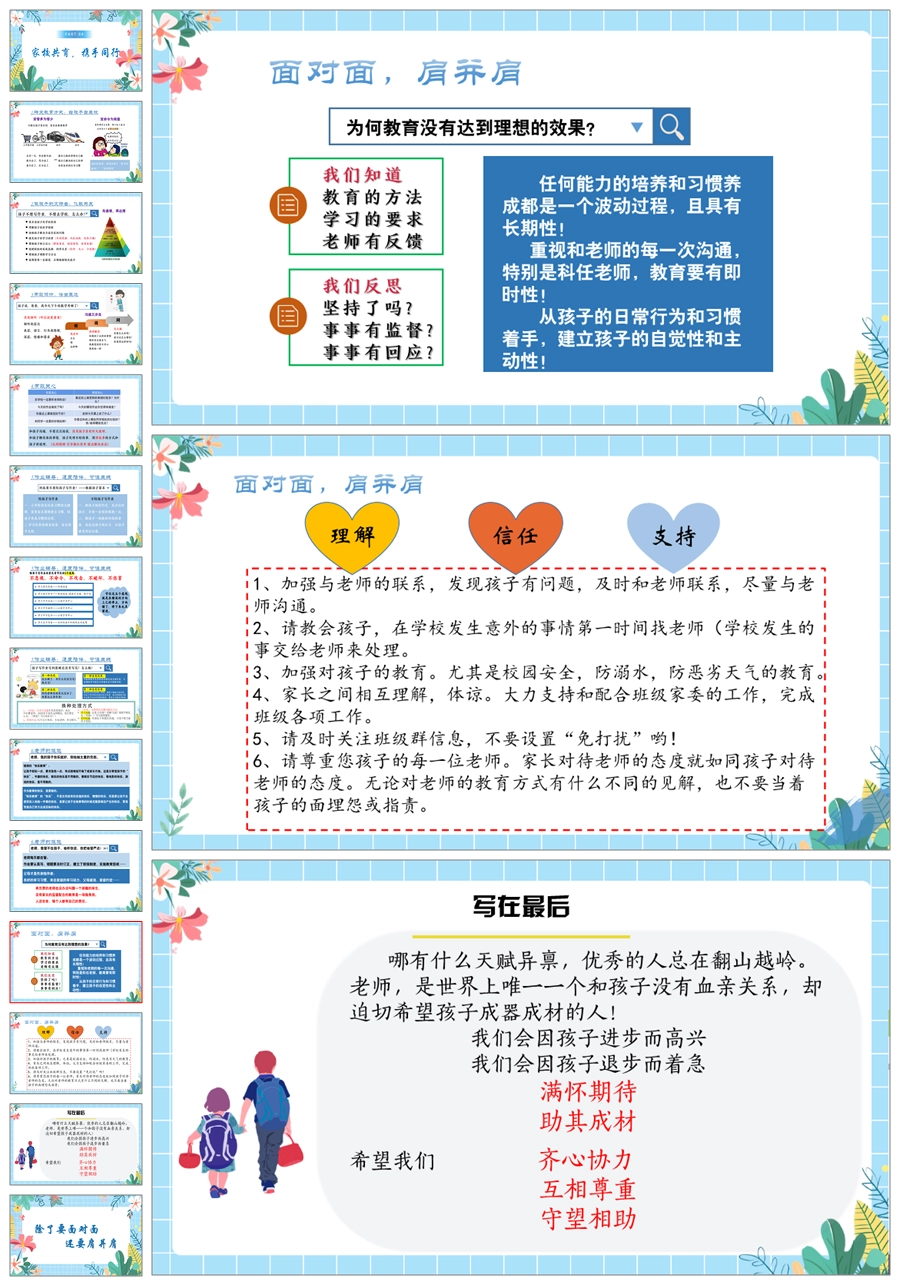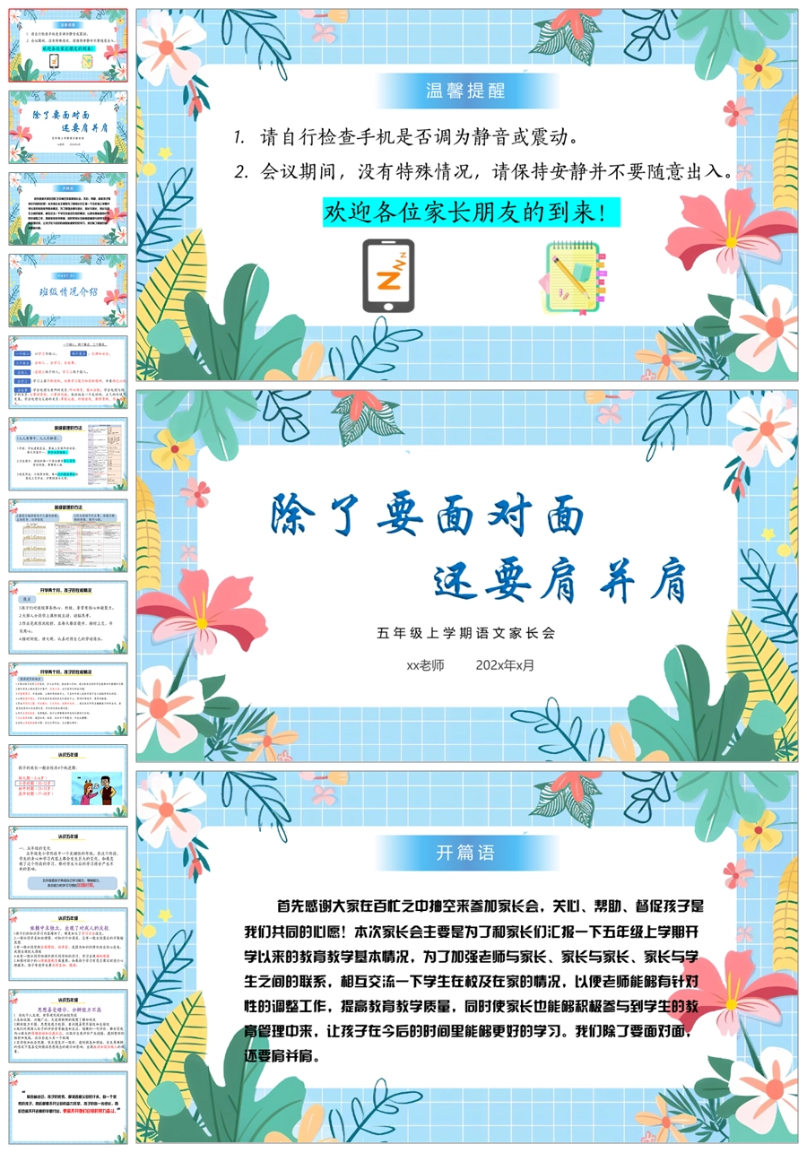 【5140】【五上】【语文】【除了要面对面,还要肩并肩】五年级上学期秋季家长会ppt课件+发言稿