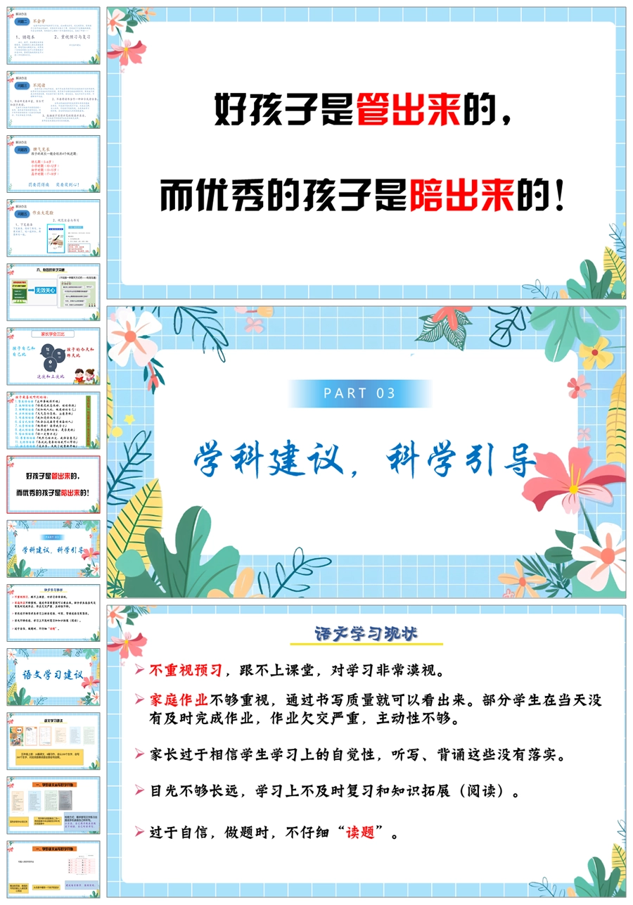 首页 五年级家长会 【5140】【五上】【语文】【除了要面对面,还要肩并肩】五年级上学期秋季家长会ppt课件+发言稿