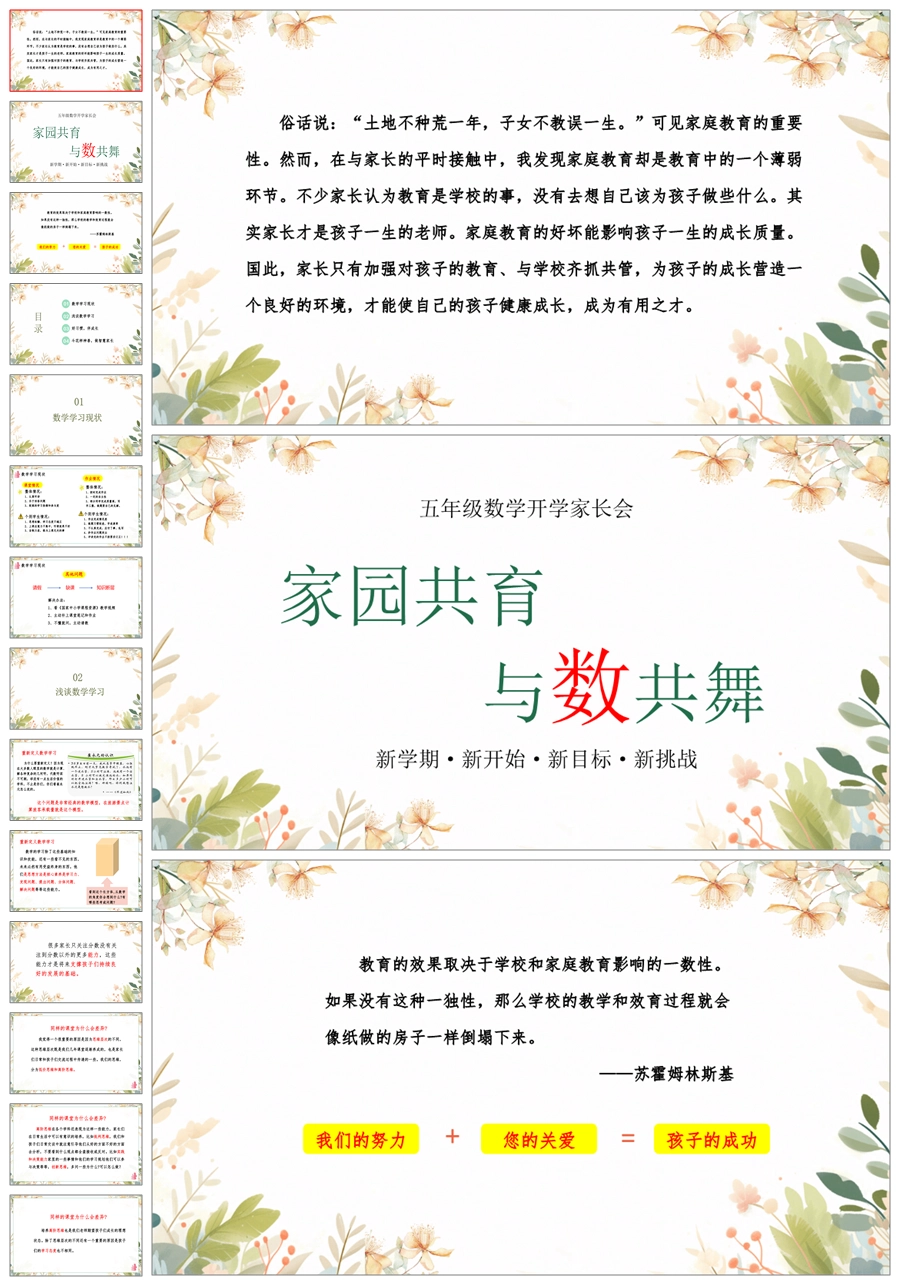 【5142】【五下】【家园共育,与“数”共舞】五年级下学期开学家长会-数学版ppt课件+发言稿