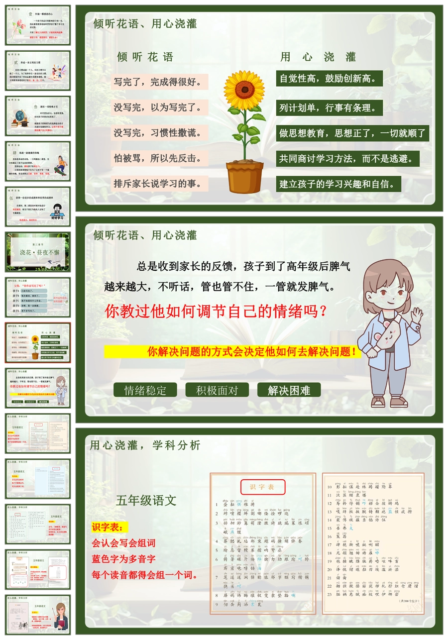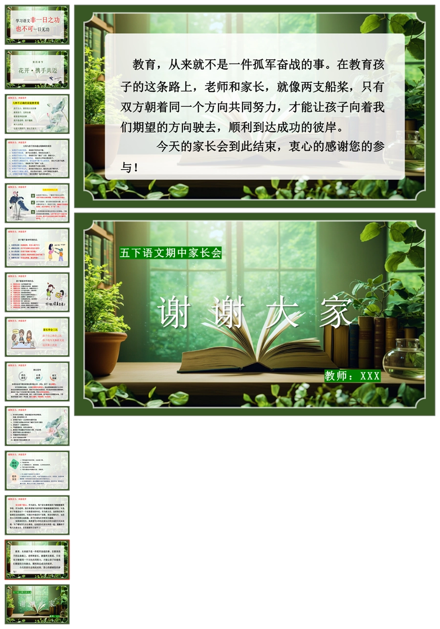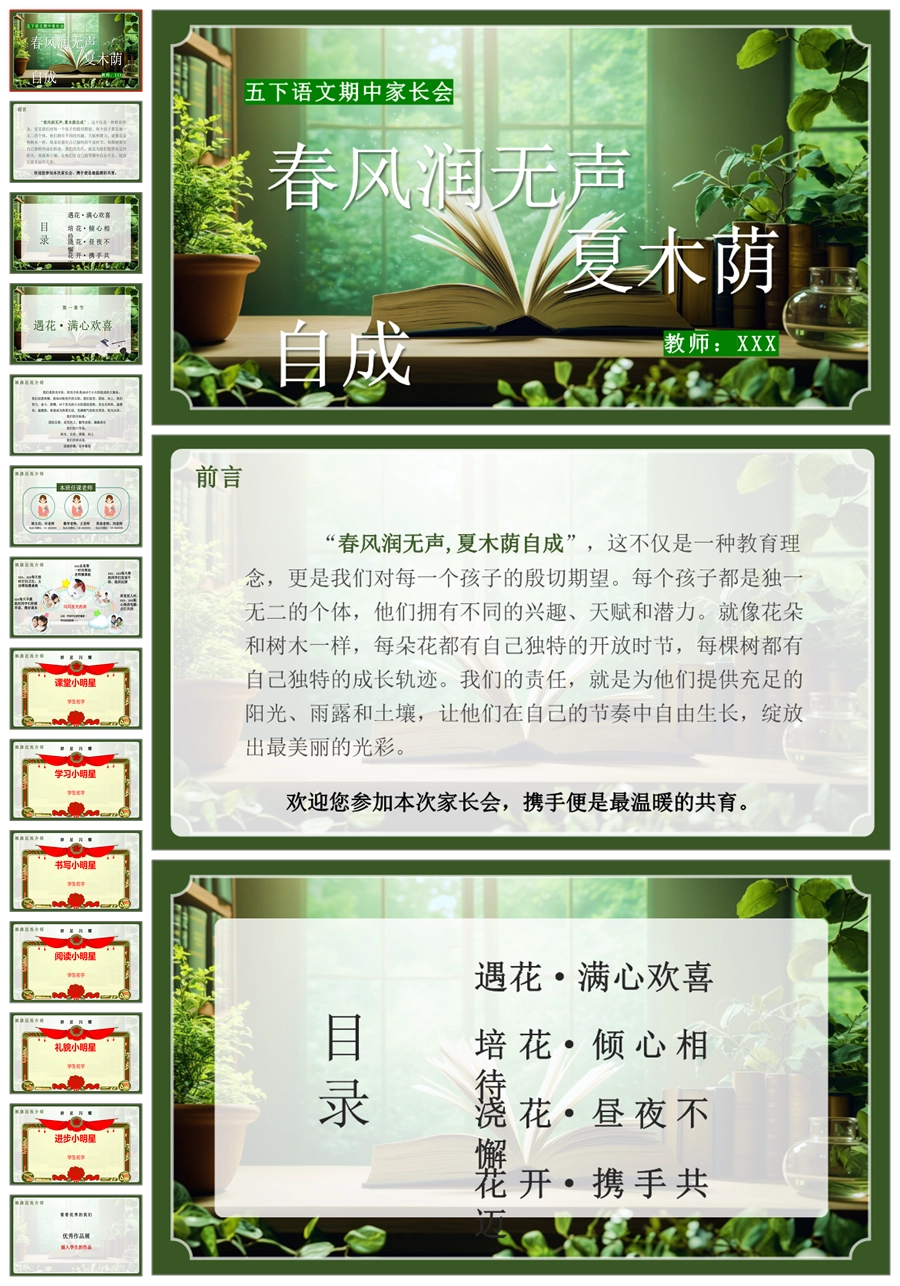 【5144】【五下】【语文】【春风润无声,夏木荫自成】五年级下学期期中家长会ppt课件+发言稿