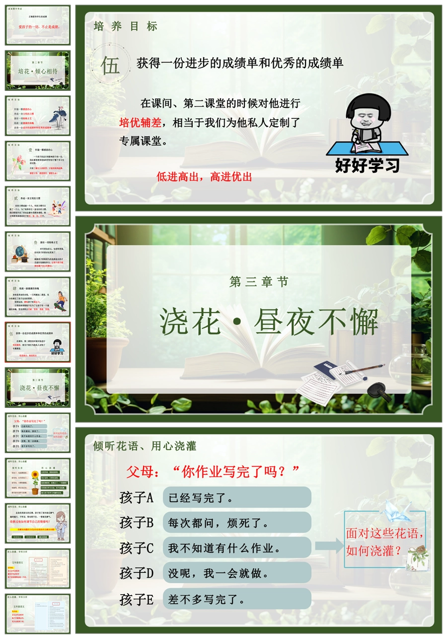 首页 五年级家长会 【5144】【五下】【语文】【春风润无声,夏木荫自成】五年级下学期期中家长会ppt课件+发言稿