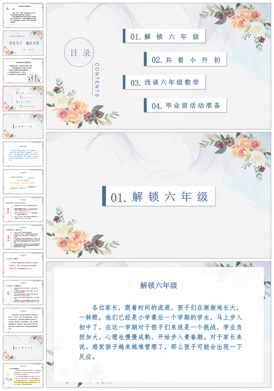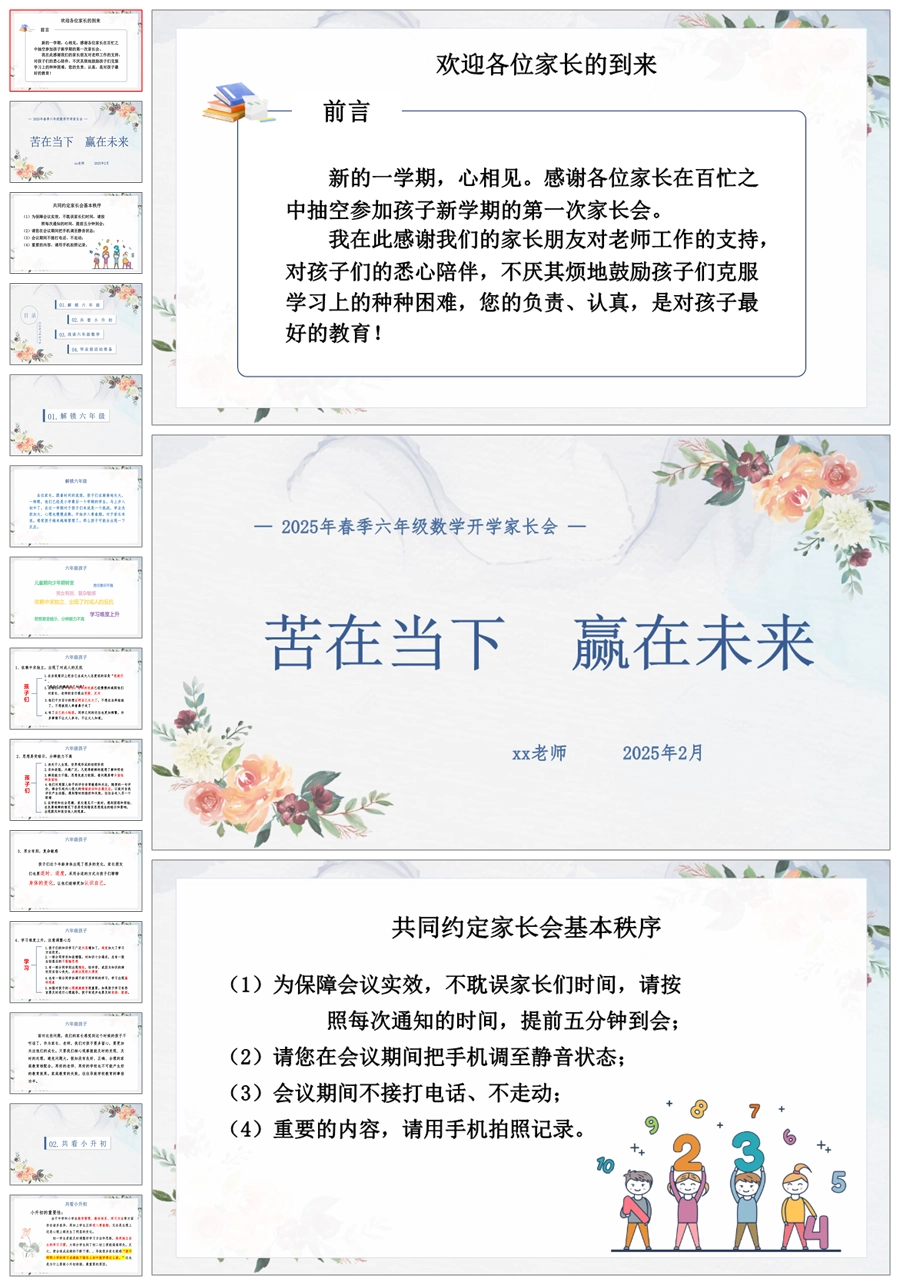 【5170】【六年级】下数学开学家长会【苦在当下 赢在未来】六年级下学期家长会PPT课件+发言稿