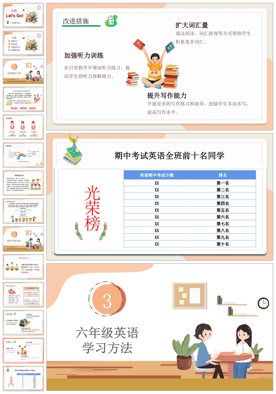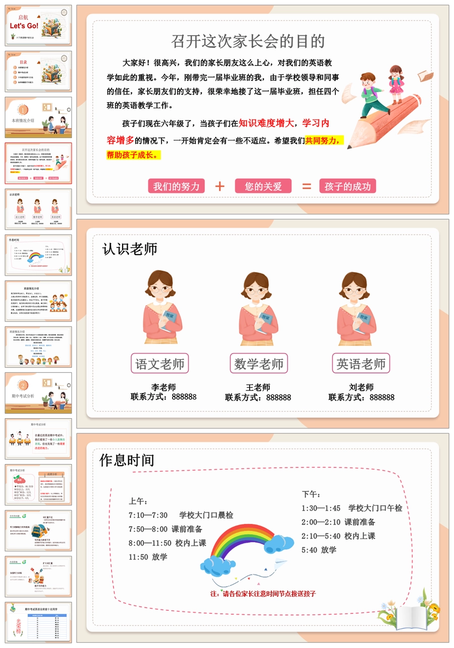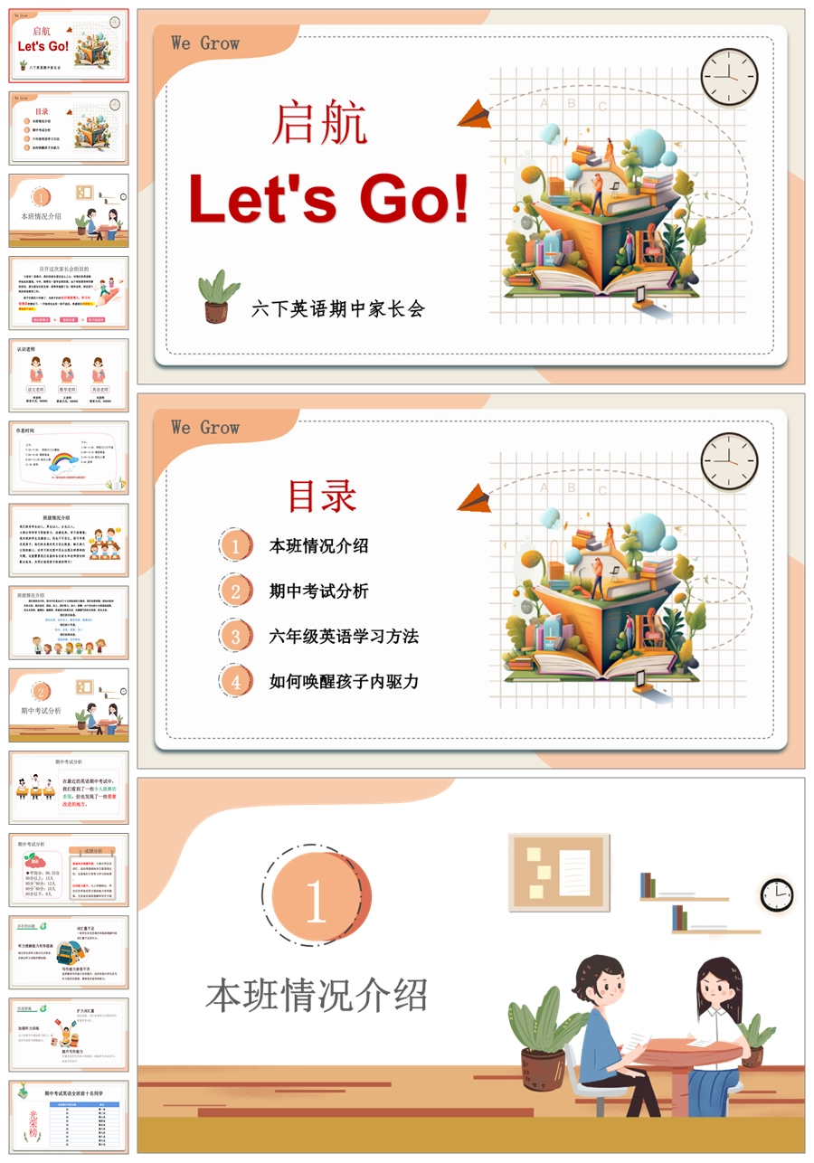【5172】【六下】【英语】【启航 ,Let us Go】六年级下学期期中家长会PPT课件+发言稿
