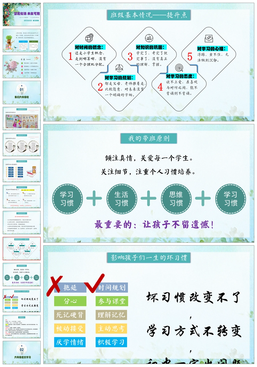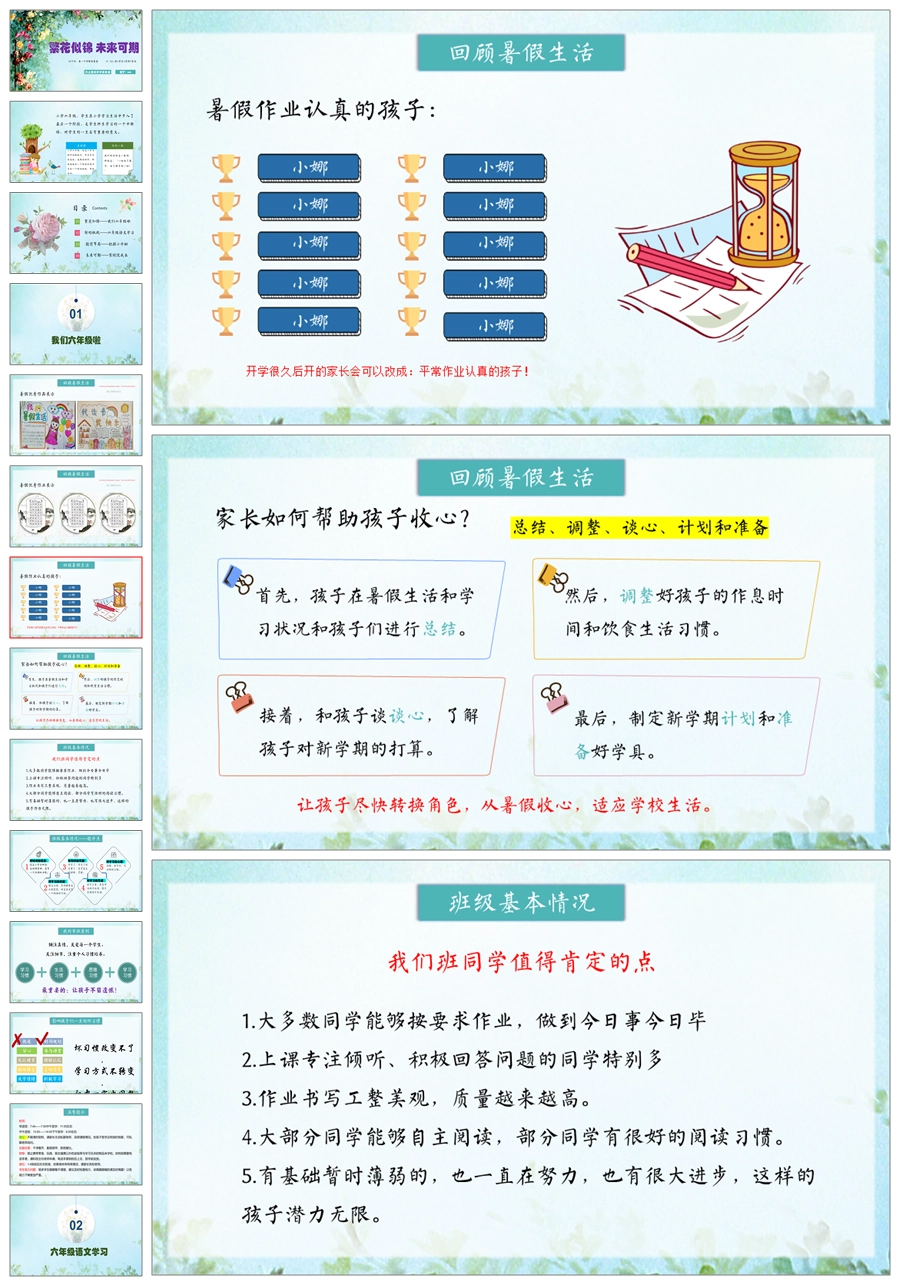 【5161】【六上】【语文】【繁花似锦 未来可期】六年级上学期开学家长会PPT课件+发言稿