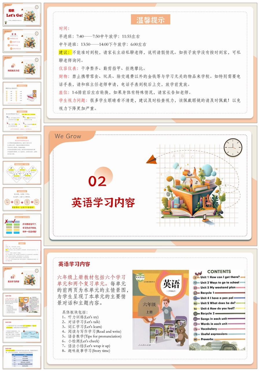 【5178】【六上】【英语】【启航, Let us Go!】六年级上学期开学家长会PPT课件+发言稿