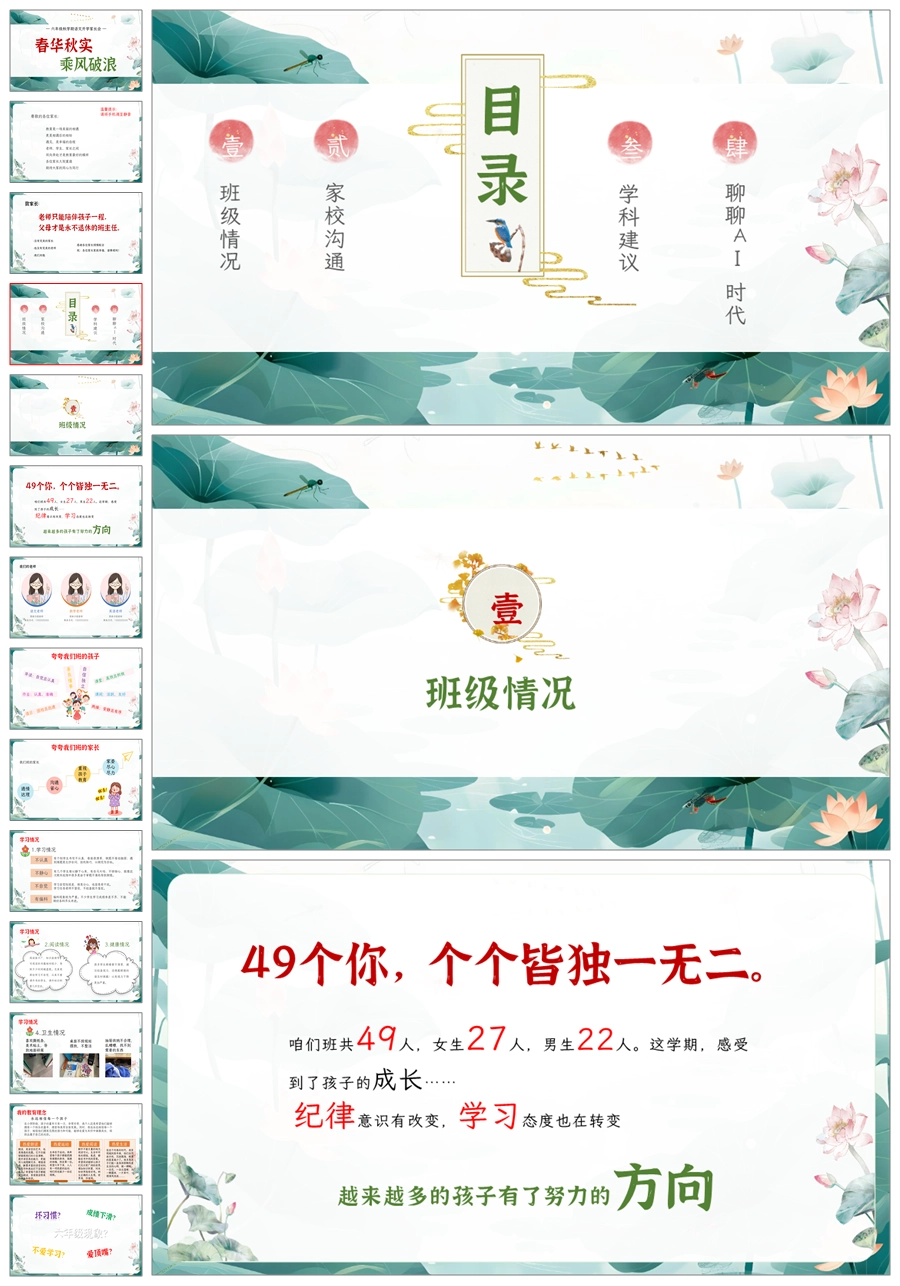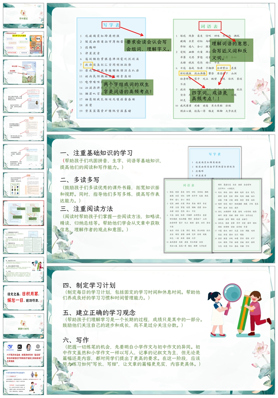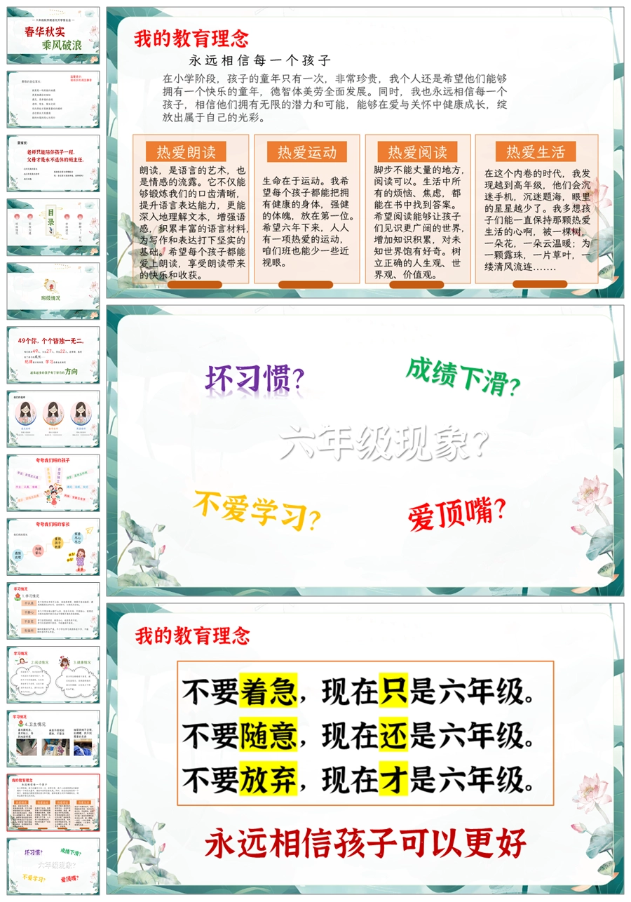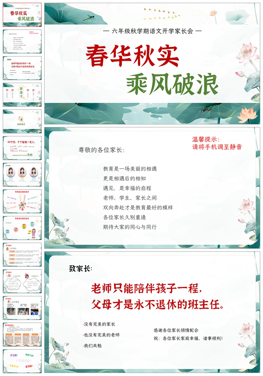 【5181】【六上】【语文】【春华秋实,乘风破浪】六年级上学期开学家长会PPT课件+发言稿