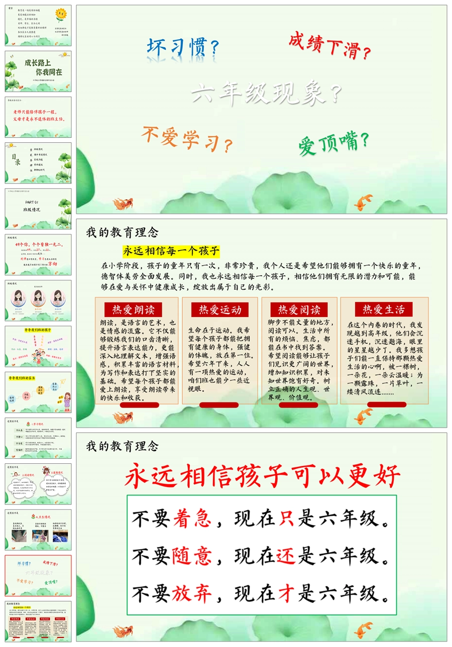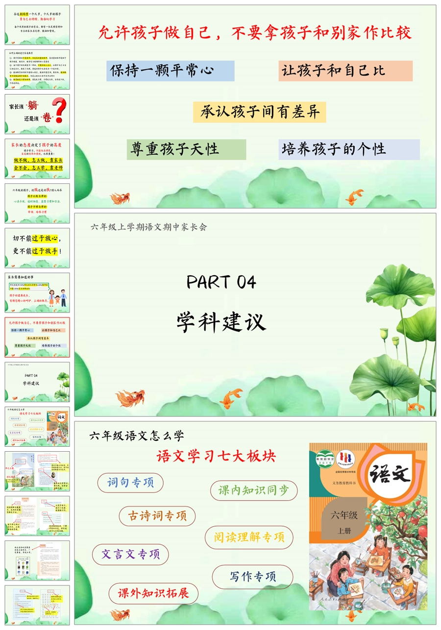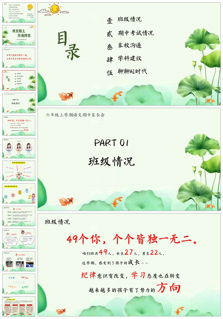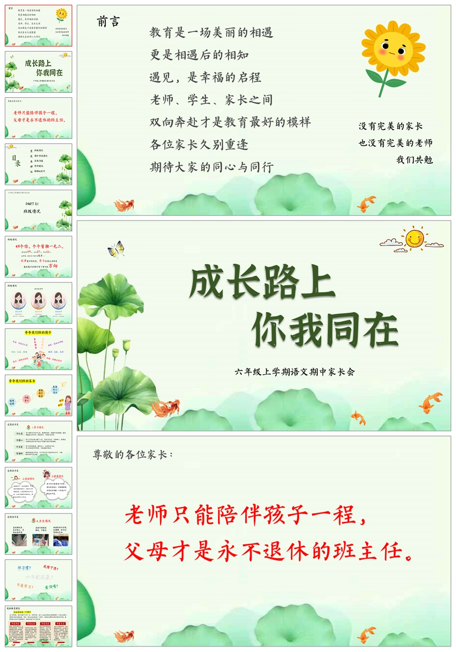 首页 六年级家长会 【5184】【六上】【语文】【成长路上,你我同在】六年级上学期期中家长会PPT课件+发言稿