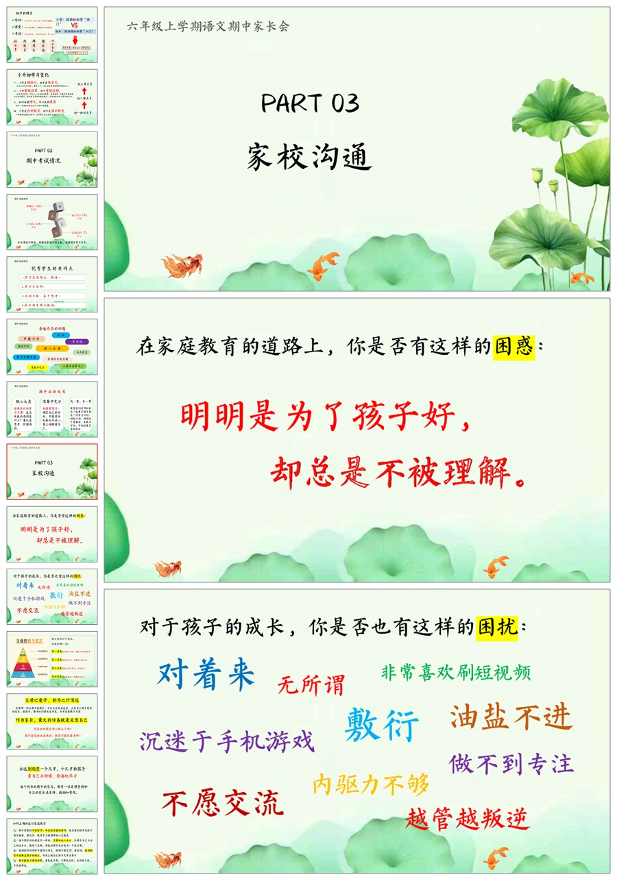 【5184】【六上】【语文】【成长路上,你我同在】六年级上学期期中家长会PPT课件+发言稿