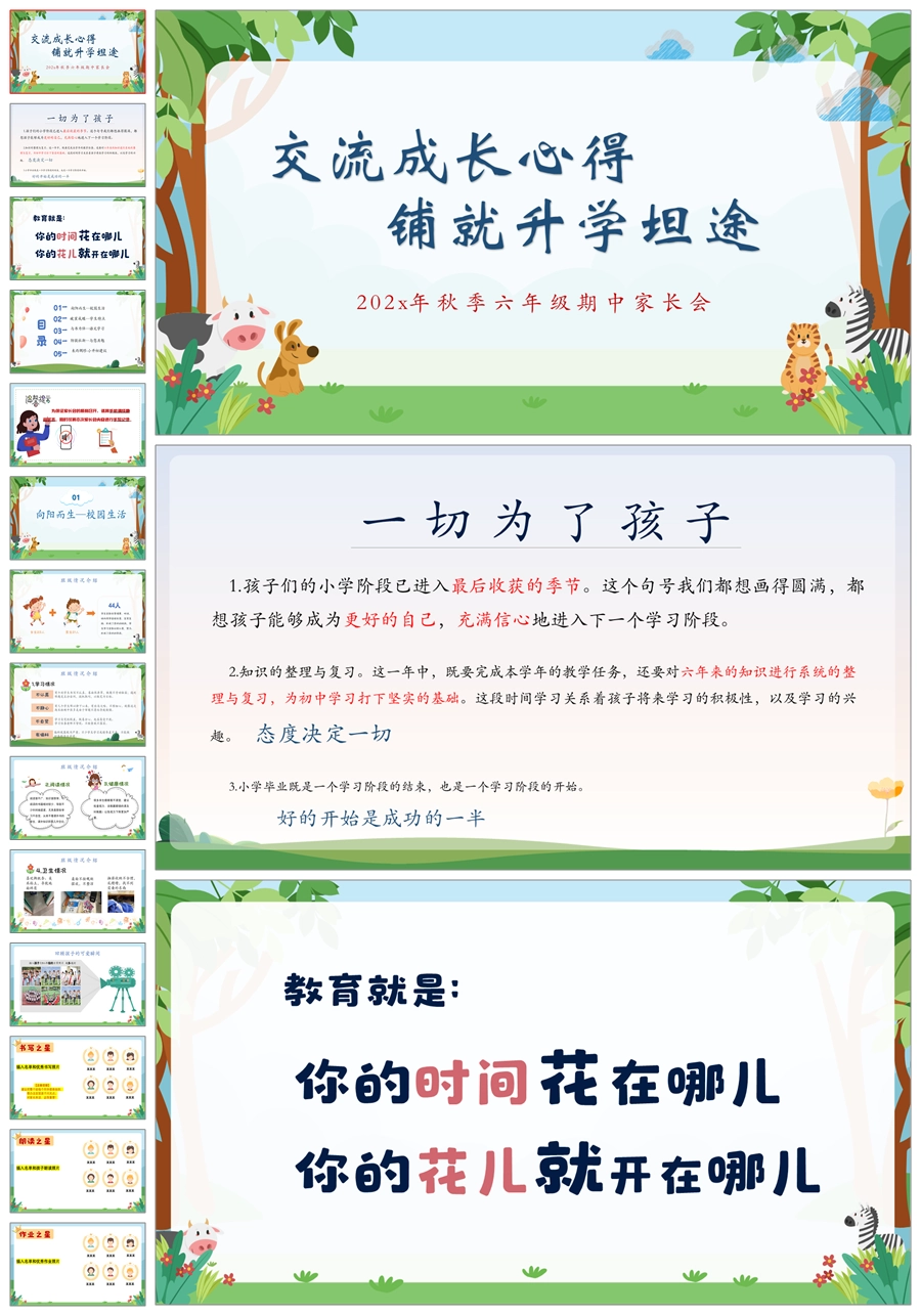 【8264】【六年级家长会】《交流成长心得铺就升学坦途》六年级期中家长会PPT课件(课件+视频+发言稿)