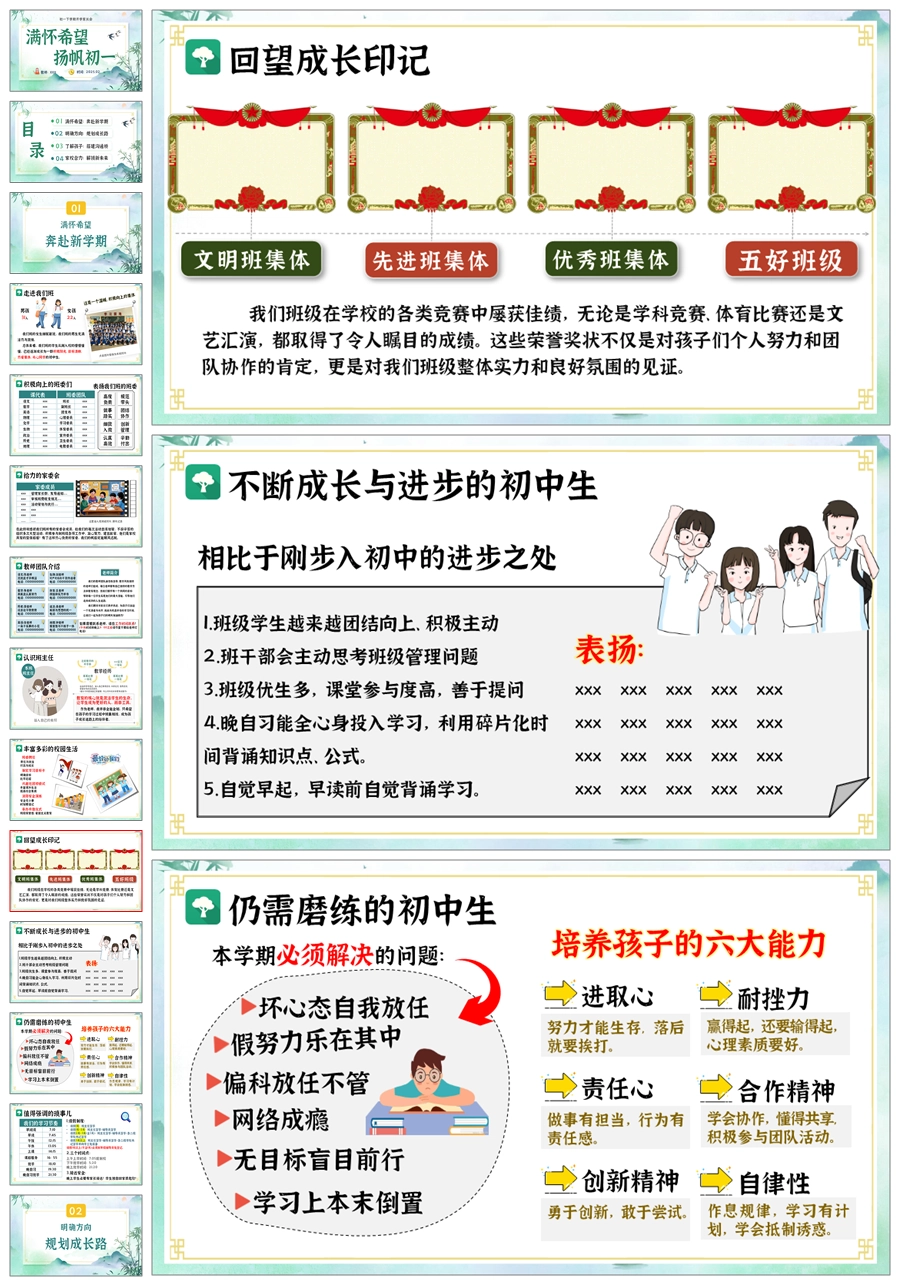 【5187】【初一】【下开学】七年级家长会【满怀希望 扬帆初一】PPT课件+发言稿