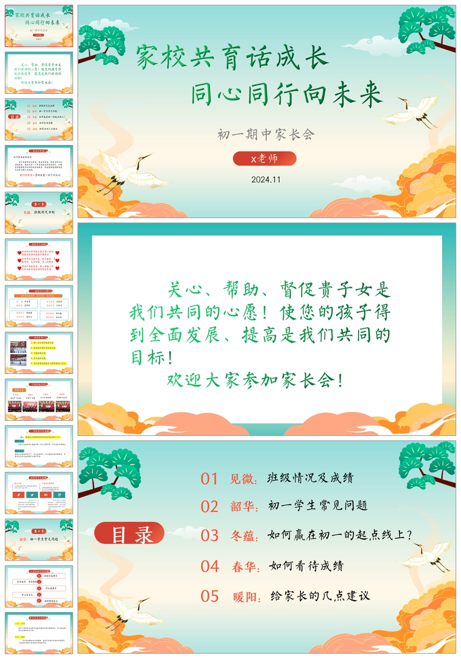 【5189】【初一】期中家长会【家校共育话成长,同心同行向未来】PPT课件+发言稿