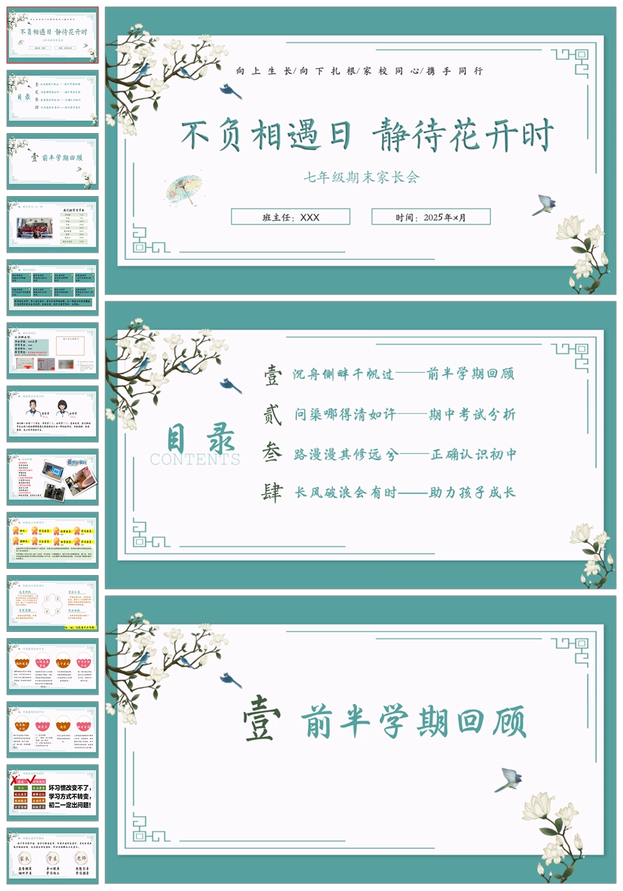 【5191】【初一】期中期末家长会【不负相遇日静待花开时】PPT课件+发言稿