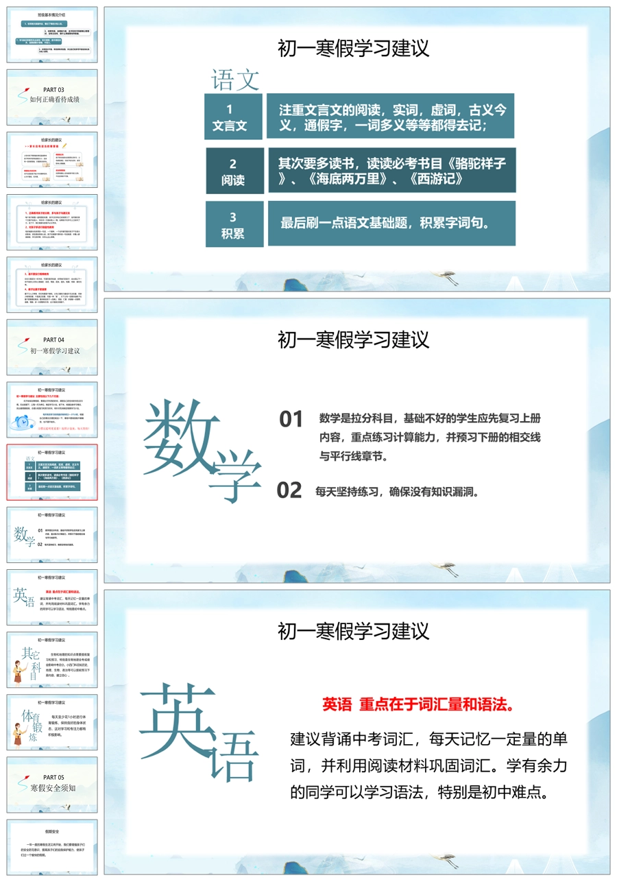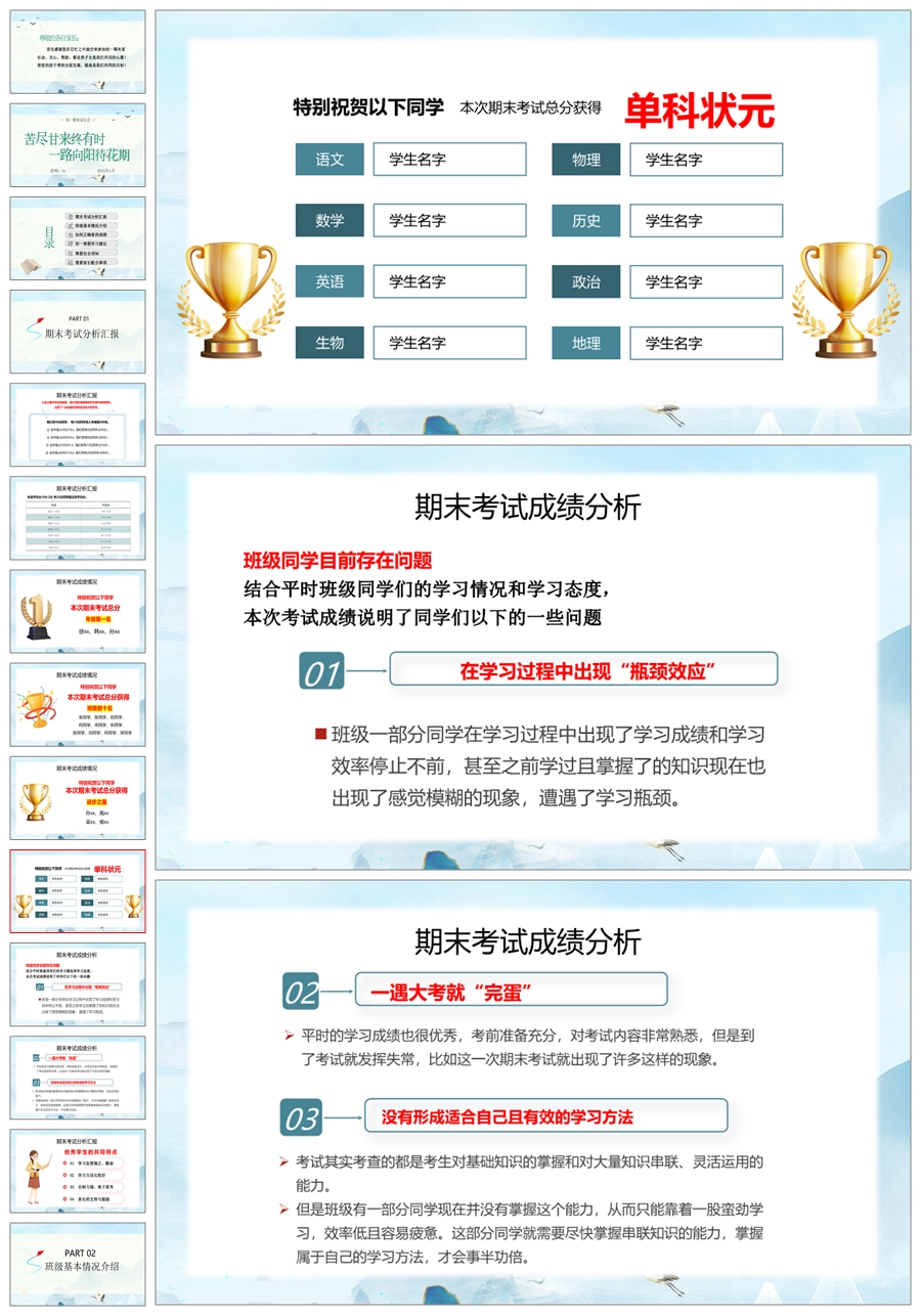 【5194】【初一】【上学期】【苦尽甘来终有时一路向阳待花期】七年级上学期期末家长会PPT课件+发言稿