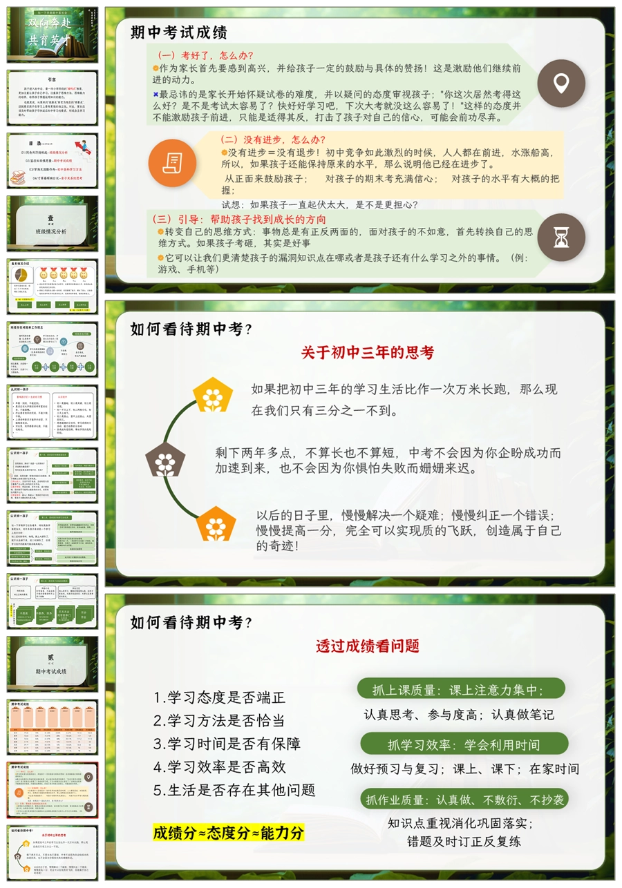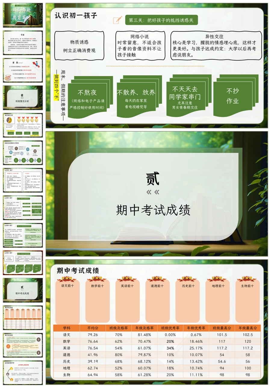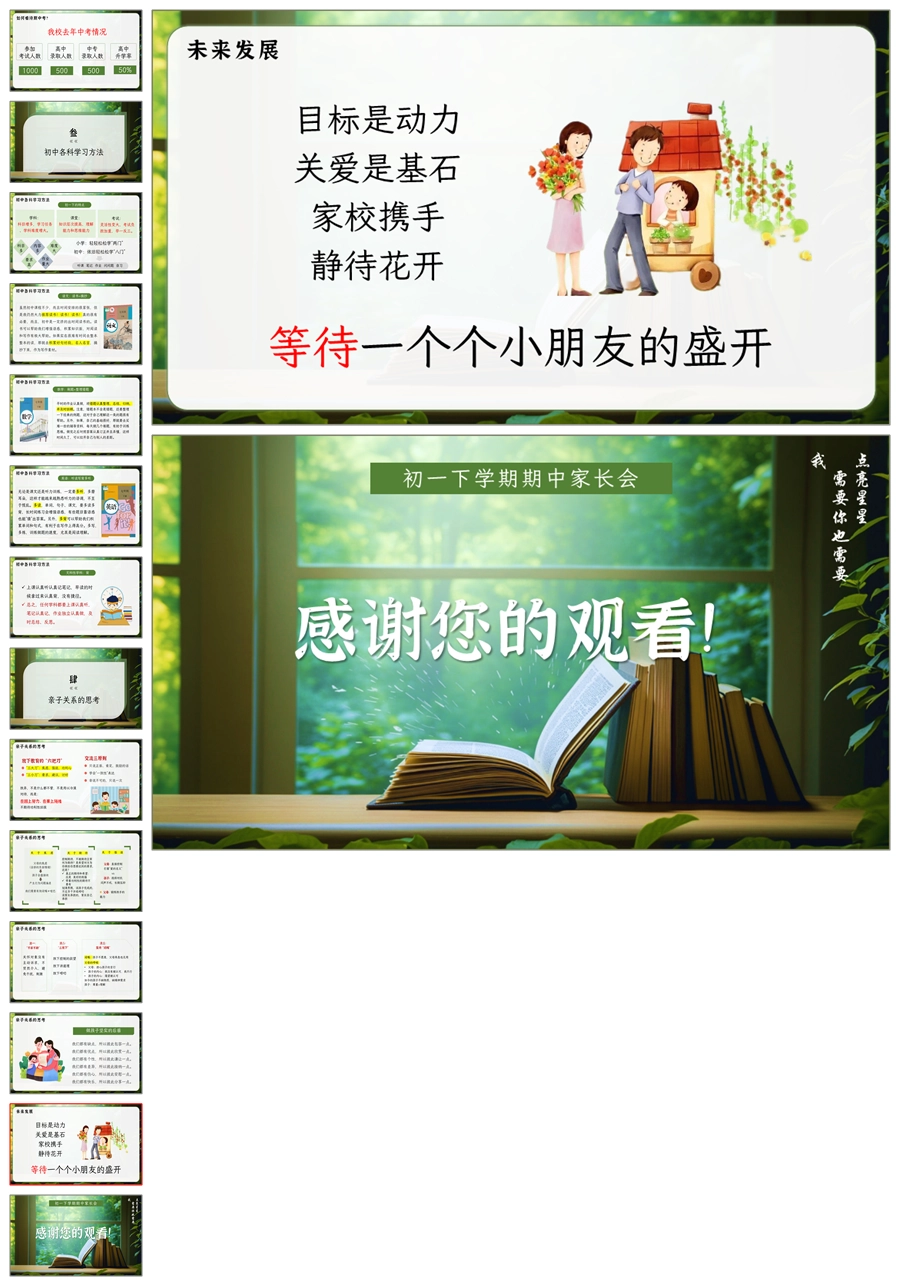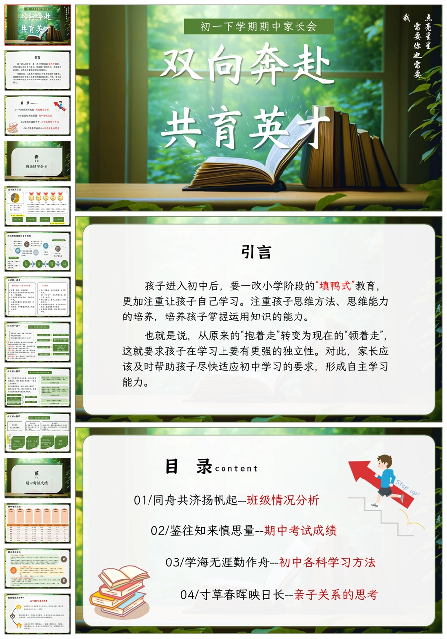 【5199】【初一】【下学期】【双向奔赴 共育英才】七年级下学期期中家长会PPT课件+发言稿