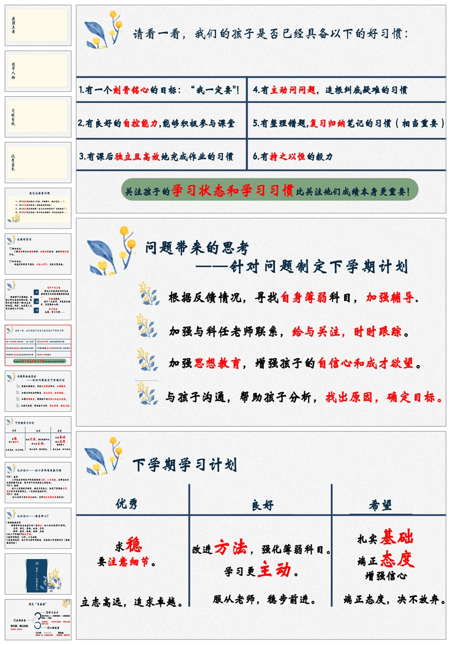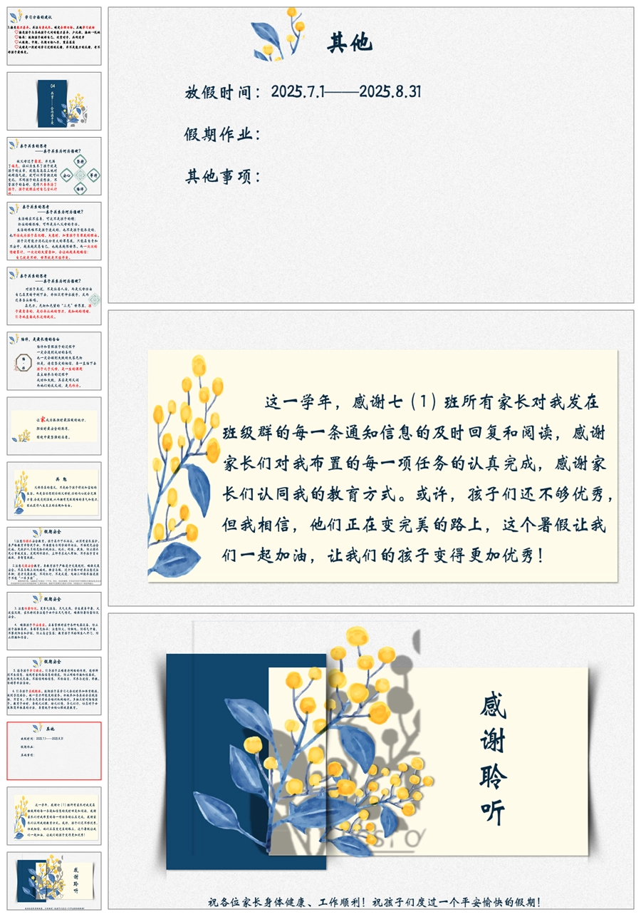 【5201】【初一】【下学期】【亦师亦友伴花开,一束微光渐斑斓】七年级下学期期末家长会PPT课件+发言稿