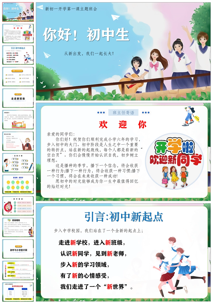 【5211】【初一】新生开学第一课主题班会【你好!初中生】PPT课件+发言稿
