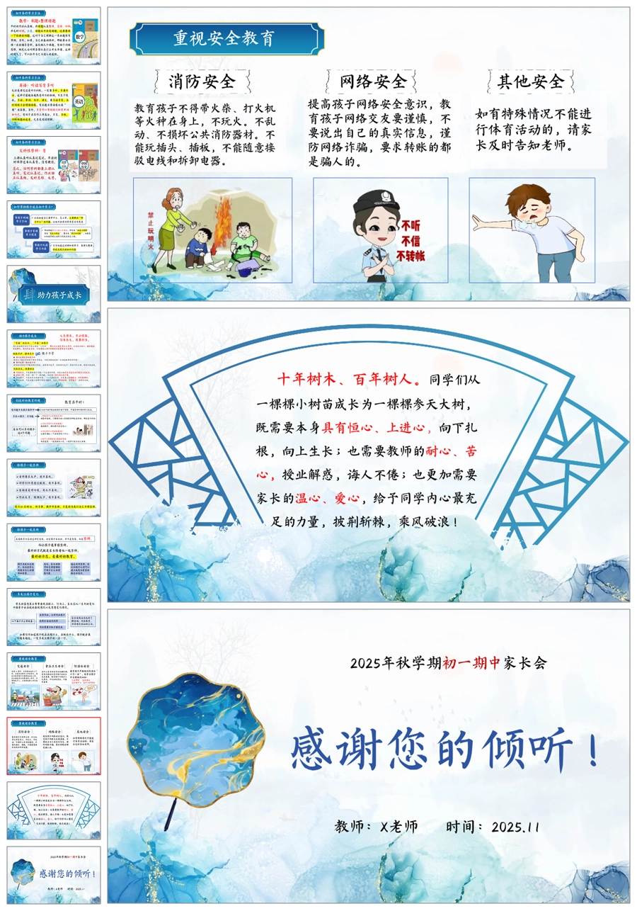 【5213】【初一】【上学期】【初一征程 家校同行】七年级上学期期中家长会PPT课件+发言稿